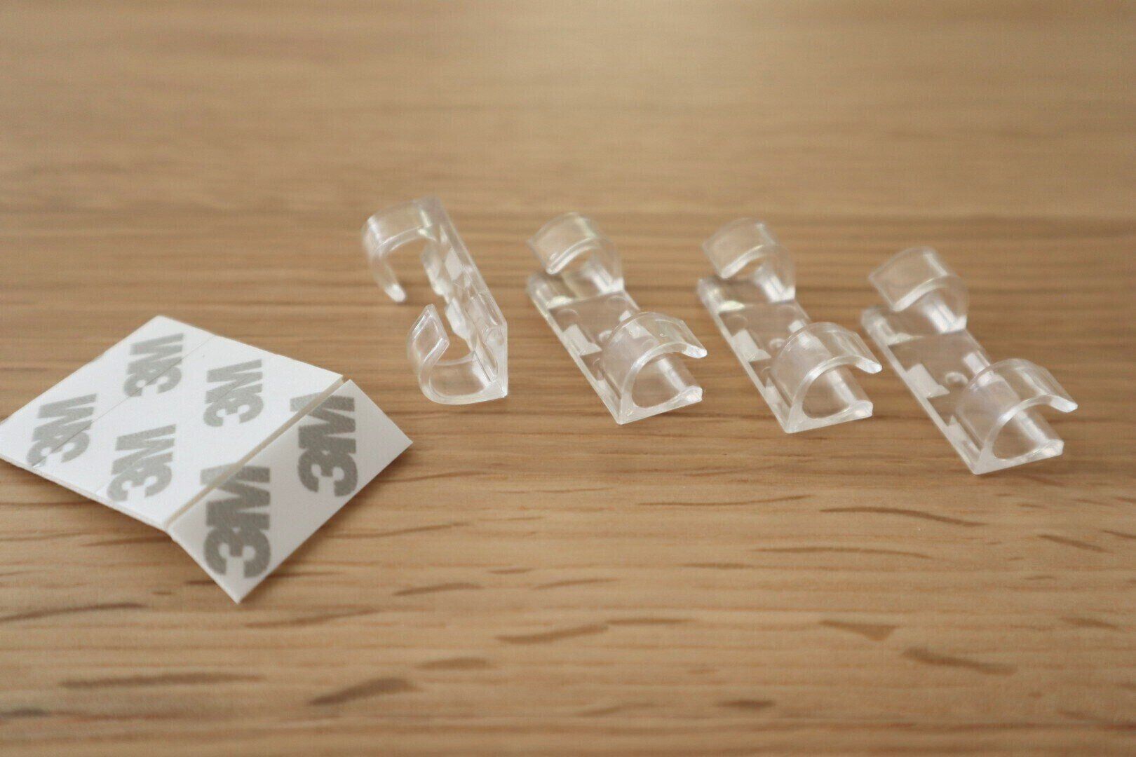 付属の両面テープを使って設置したい場所に貼り、ケーブルの先端を引っかけたり、長いコードを途中で留めて固定させたりすることができます。