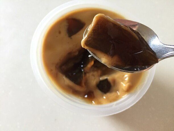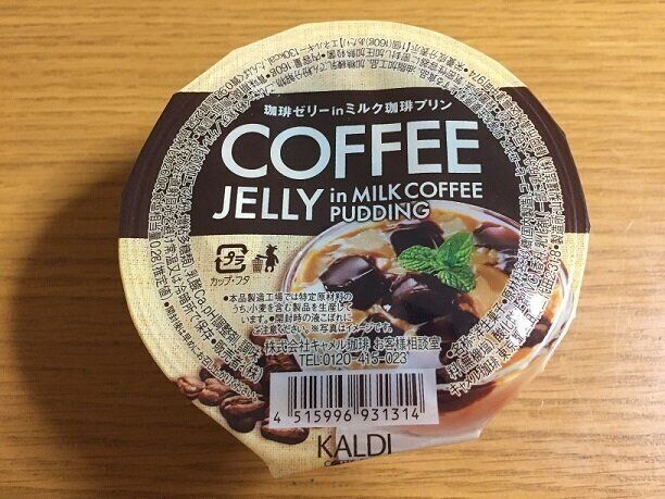 プリンの中にゼリーが入っている珍しいスイーツ「珈琲ゼリーinミルク珈琲プリン」(購入時:178円)。