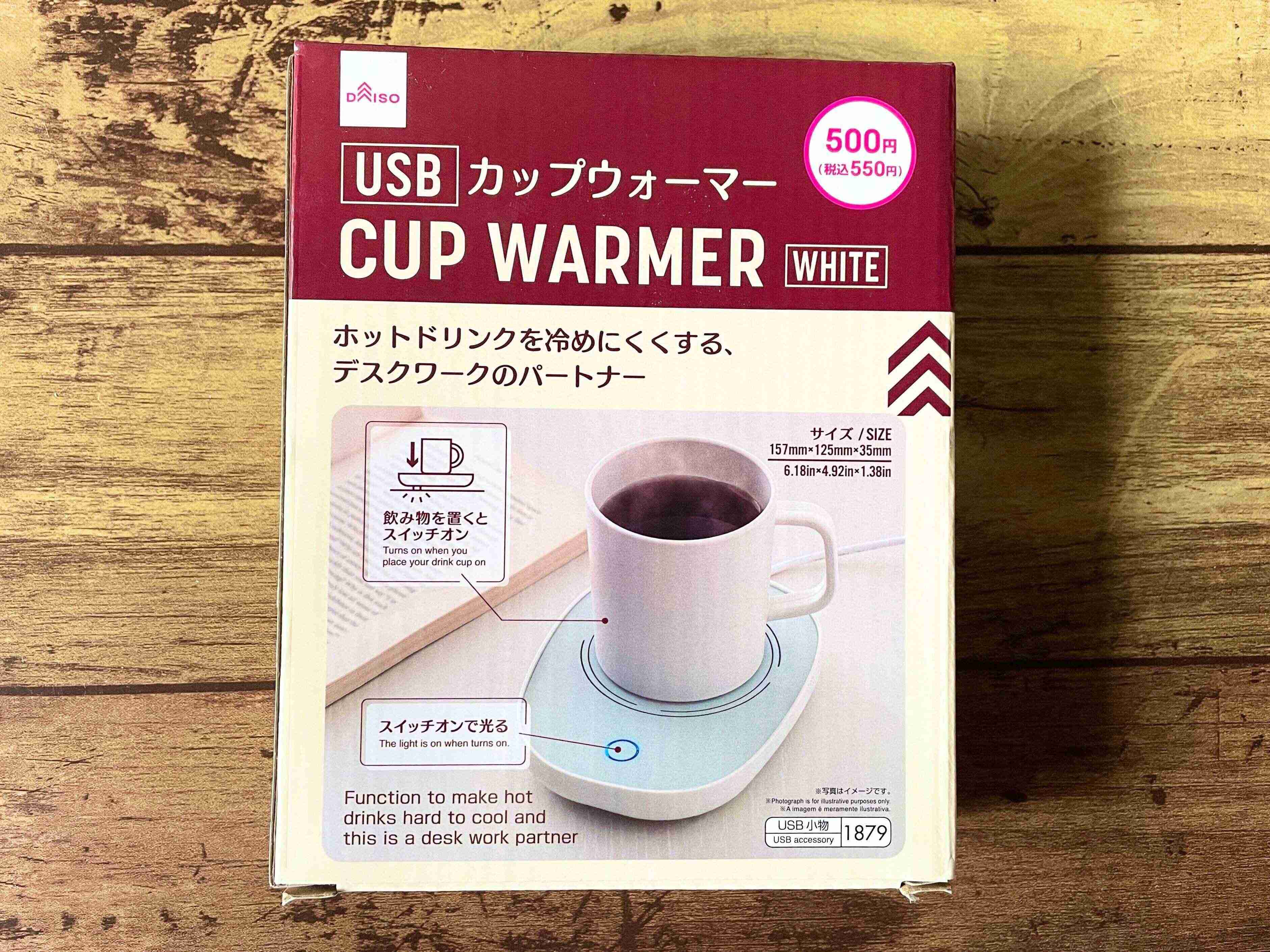 ご紹介するのは、ダイソーの「USBカップウォーマー」です。価格は550円。