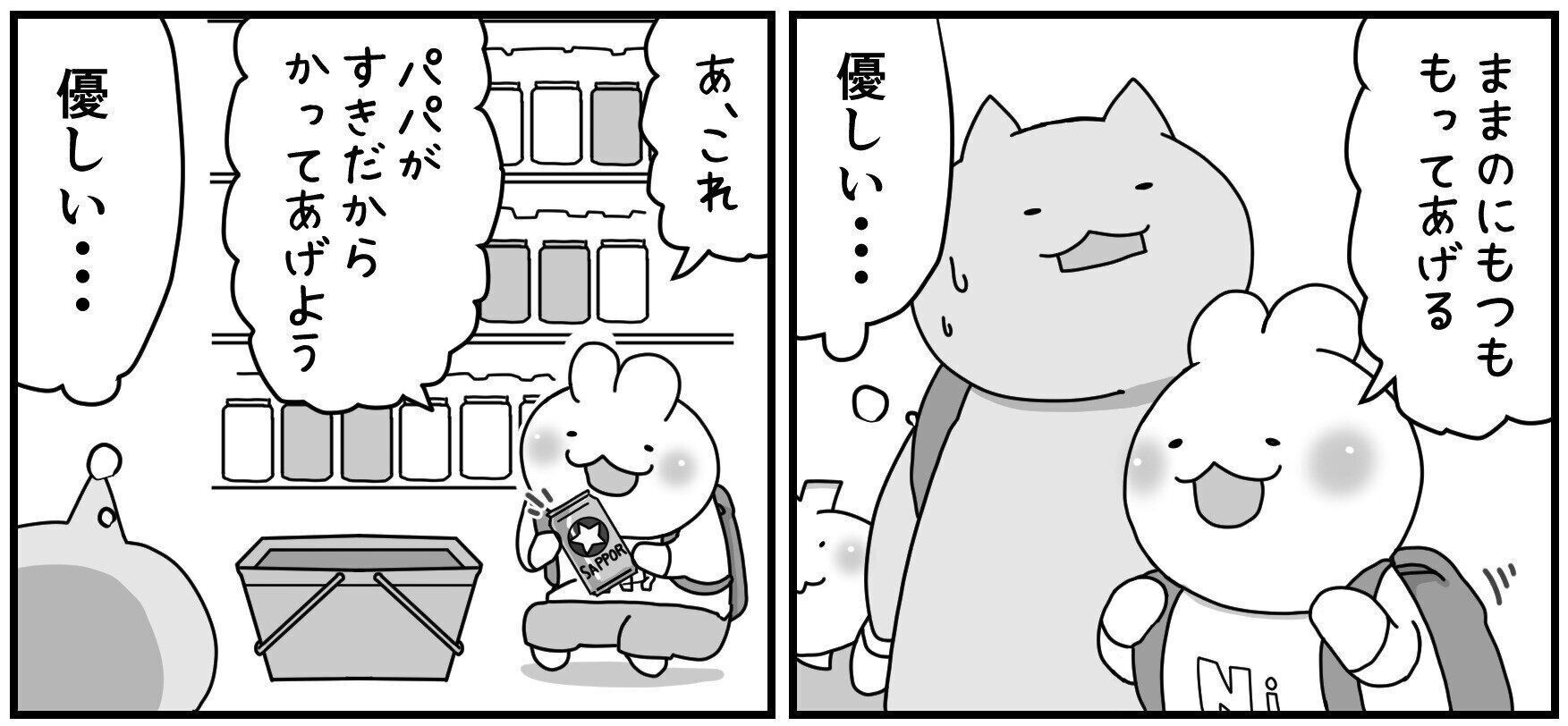 ににくんはママの荷物を持ってあげたり、お店でパパが好きなものを選んであげたりもしています。