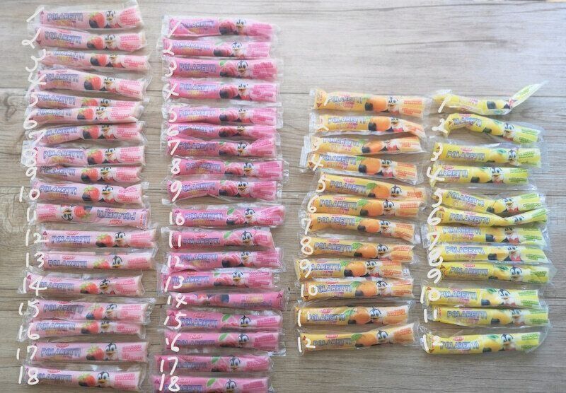 参考までに筆者が購入した箱の種類ごとの数量を数えてみたところ、イチゴ18本、サワーチェリー18本、オレンジ12本、レモン12本でした!
