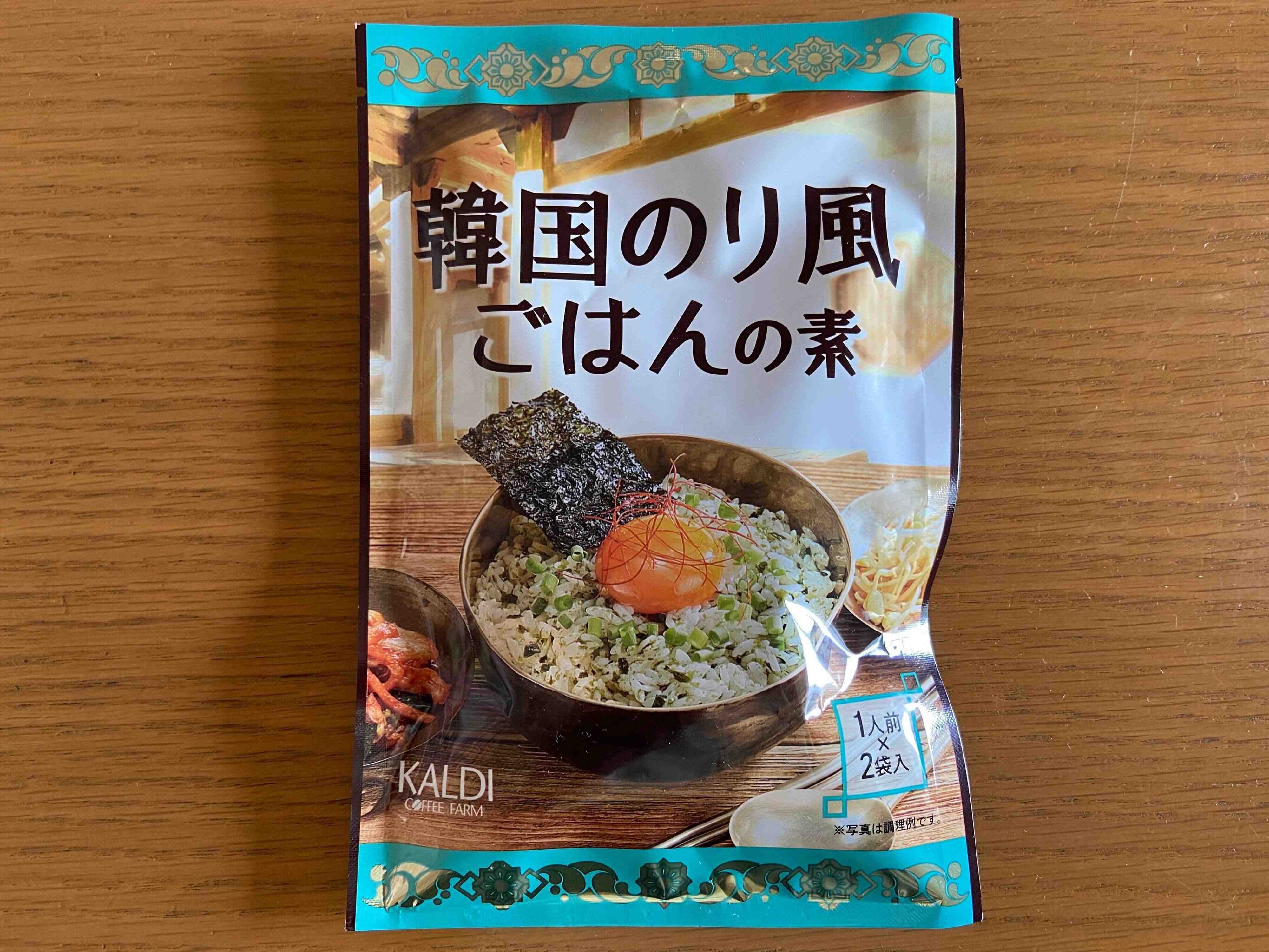 カルディにとっても魅力的なごはんの素があります。「韓国のり風ごはんの素」(購入時:198円)です。ごはんに混ぜるだけの手軽さと、パッケージのおいしそうな写真に惹かれて購入してみました。