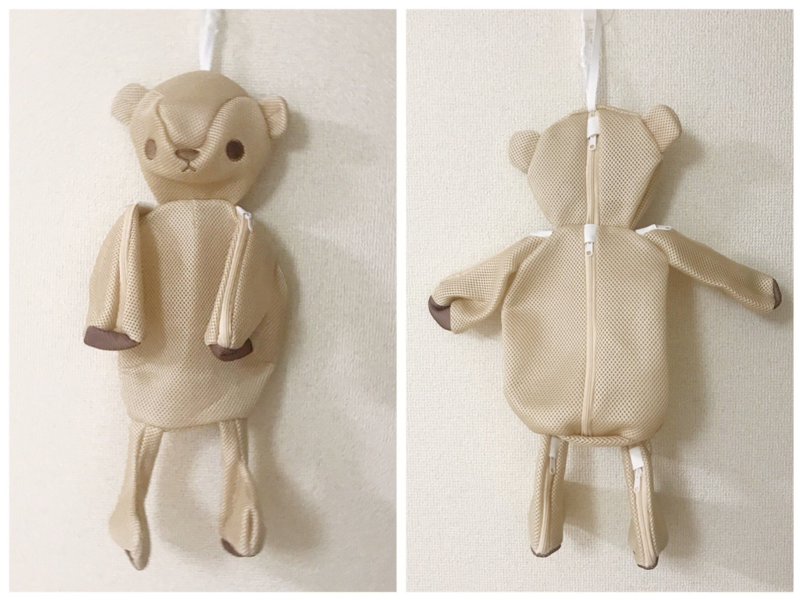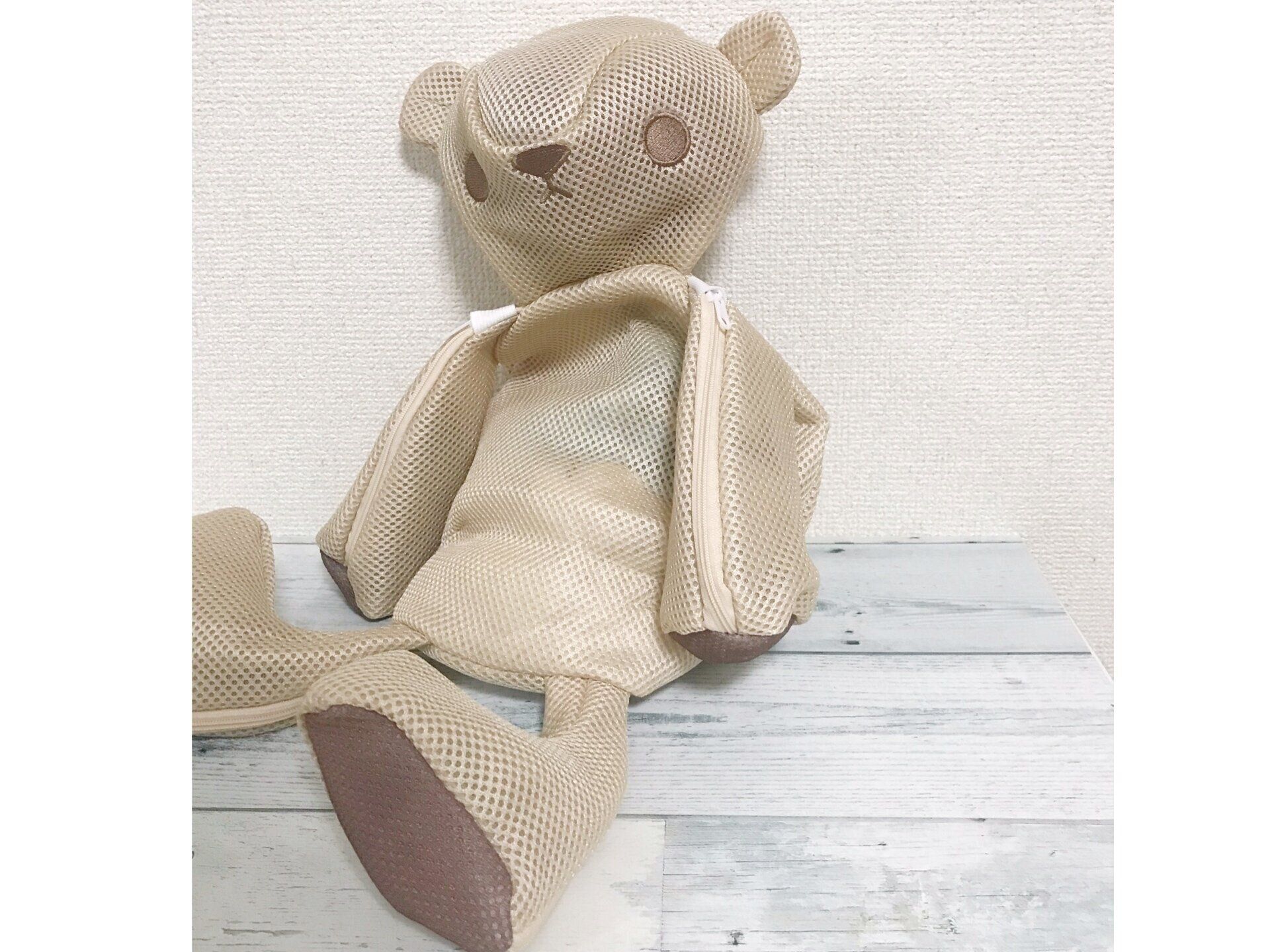 今回ご紹介するのが「6セパレートランドリーネット」(550円)。全長約52cmのビッグサイズのくまさんは、洗濯ものを入れるとボリュームが出てまるでぬいぐるみのようなかわいいランドリーネットです。