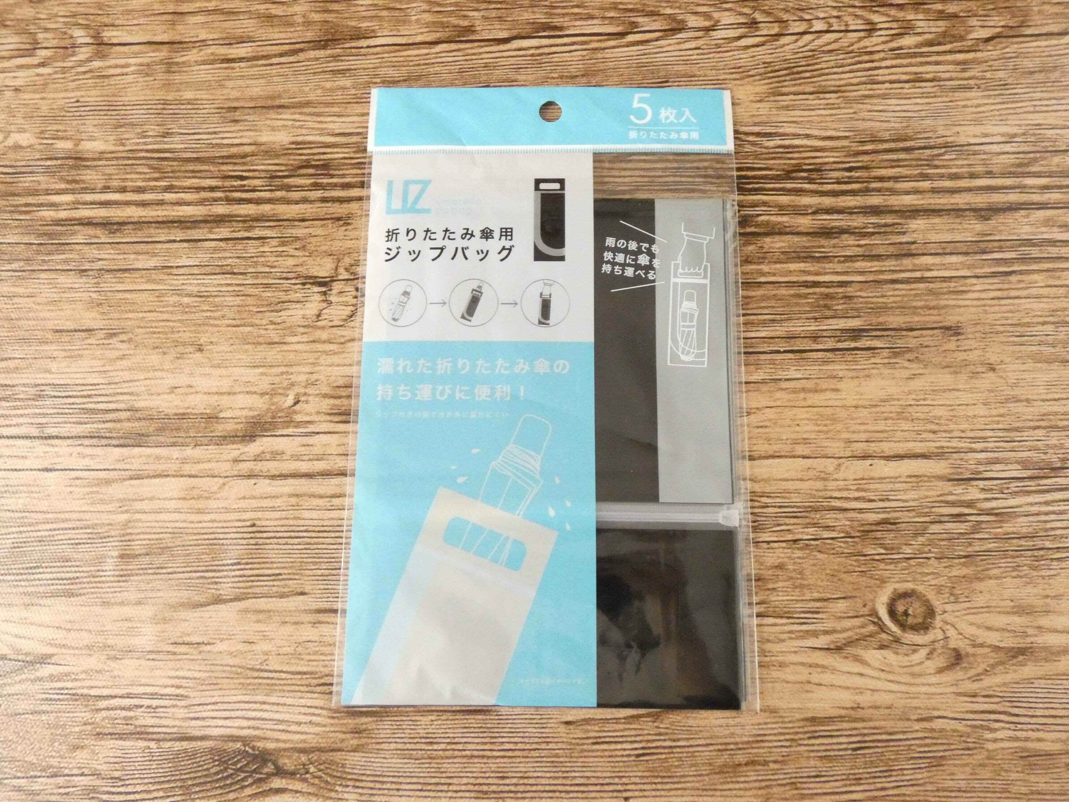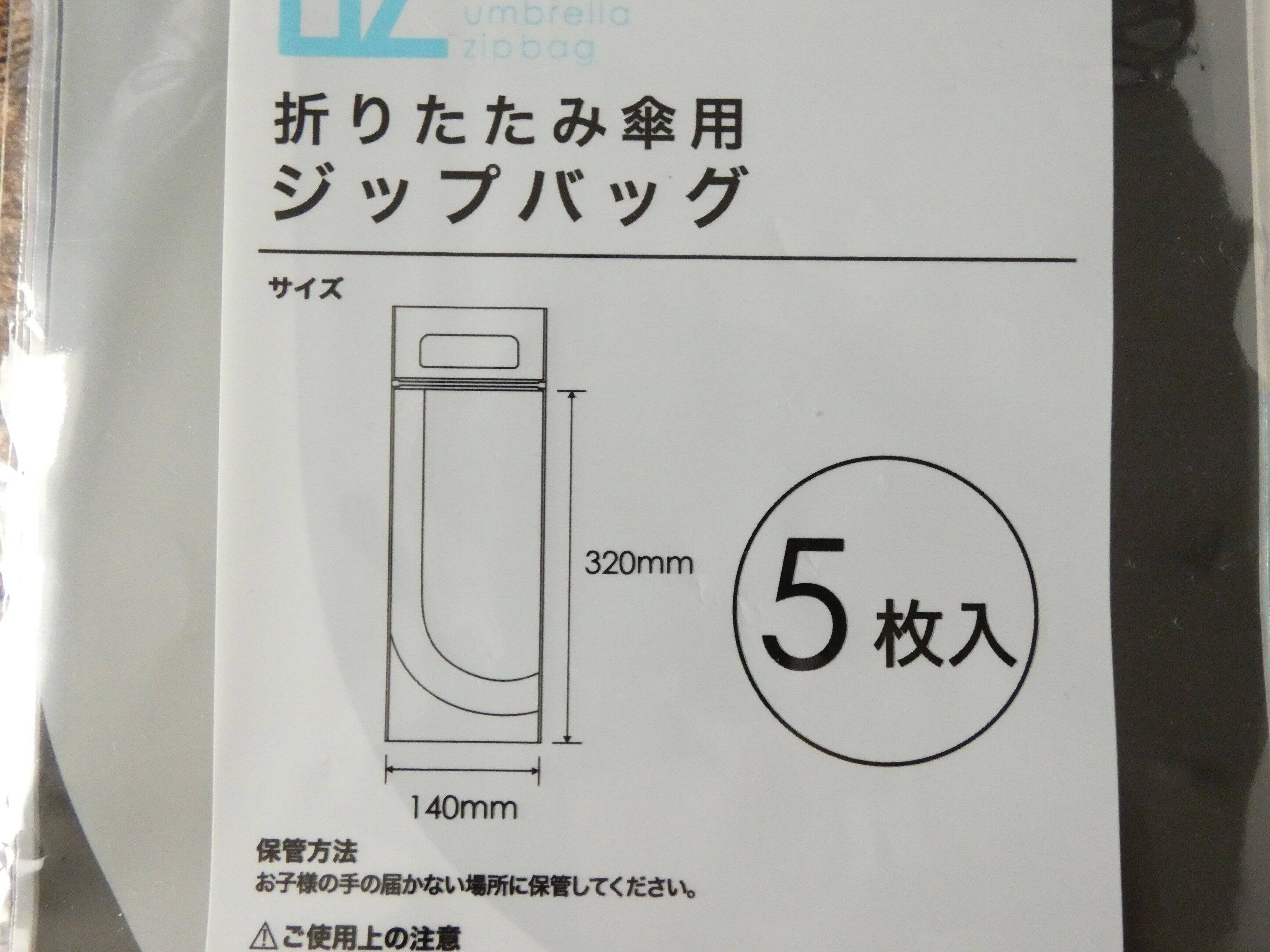 ダイソー「折りたたみ傘用ジップバッグ」は5枚入り110円。