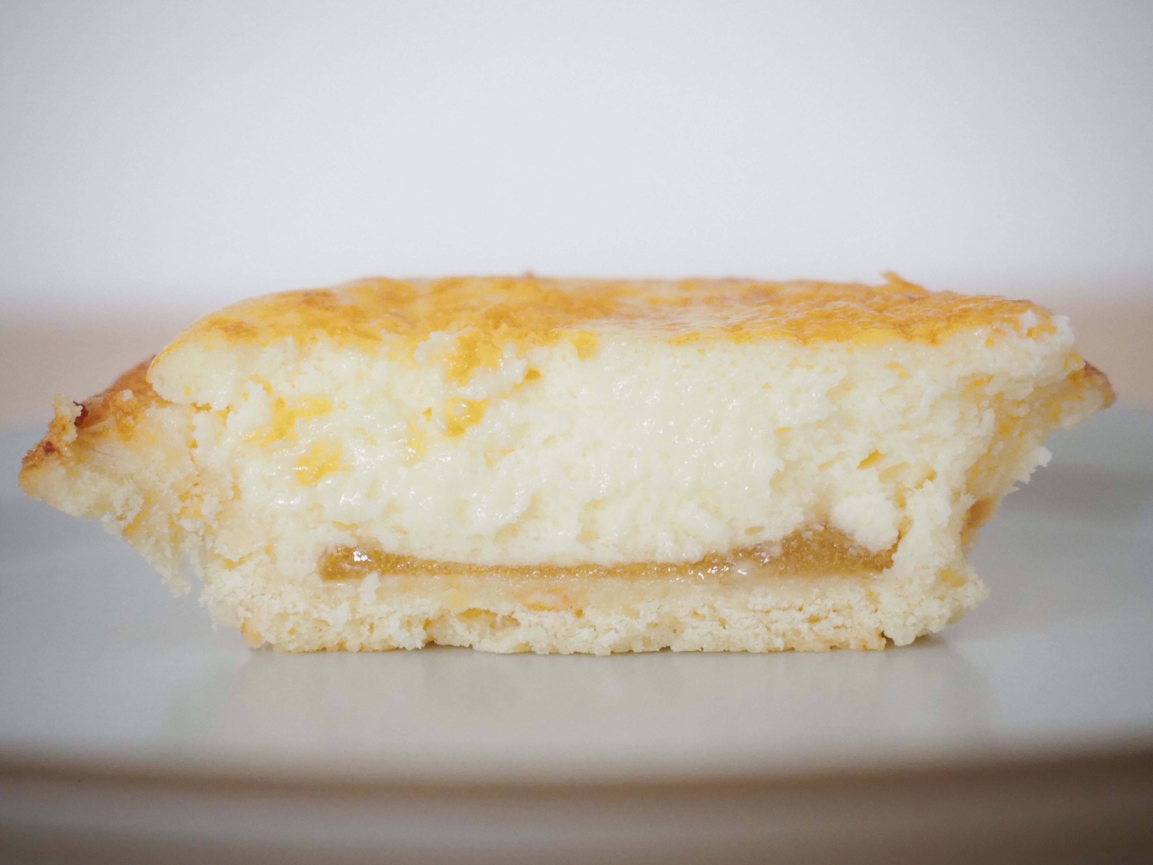 こちらが「はちみつフロマージュタルト」で、価格は195円。濃厚なチーズ生地とはちみつソースが層になり、タルト生地に収まったスイーツです。