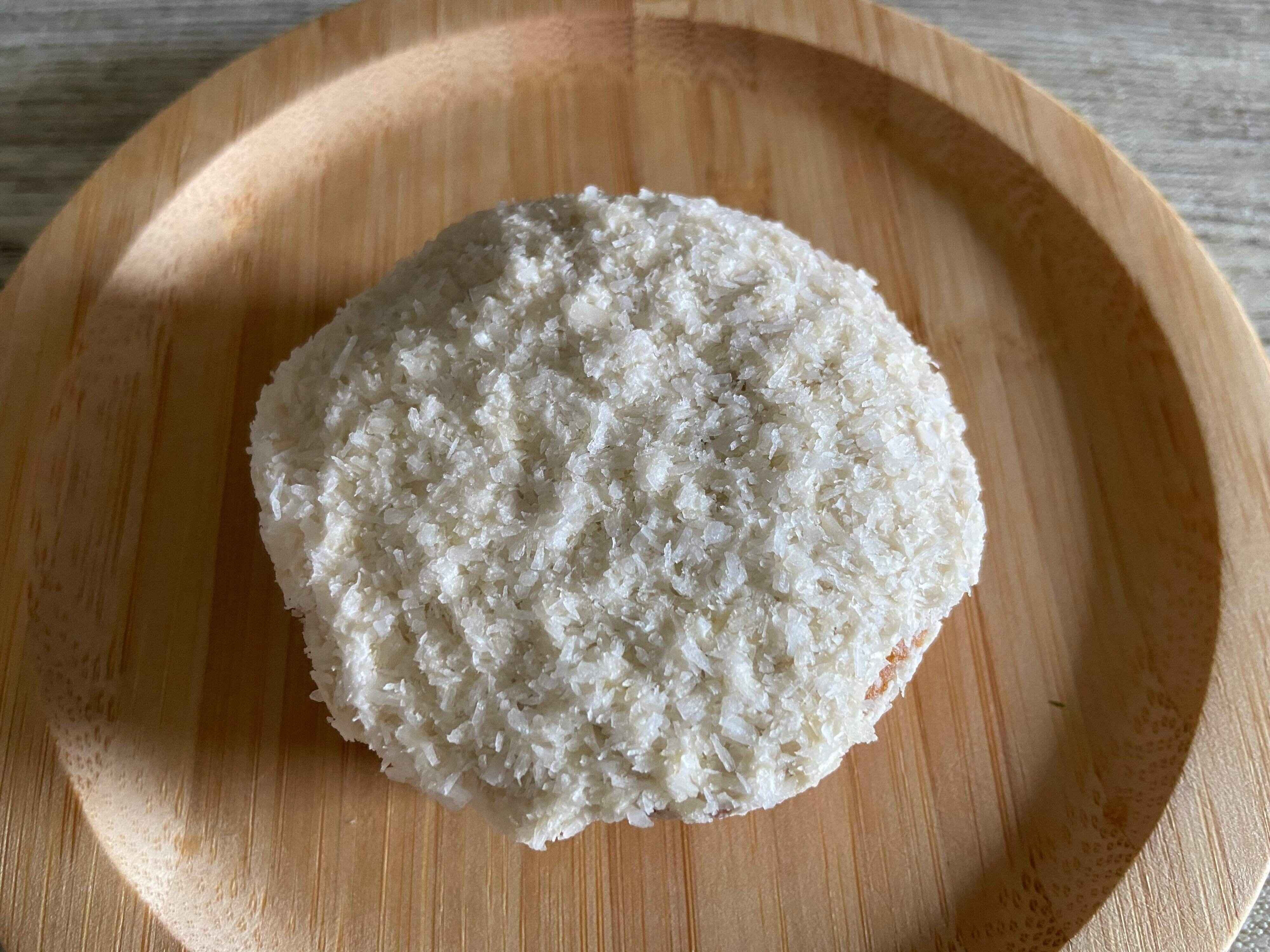 手に持った時に手のひらにおさまる小さめサイズだったので、物足りないかなと予想していましたが小さいのにしっかり満足できる味わいでした。これでもか!というくらいココナッツの香りと風味に満たされるので、ココナッツ好きさんにはぜひ食べて欲しい一品です。