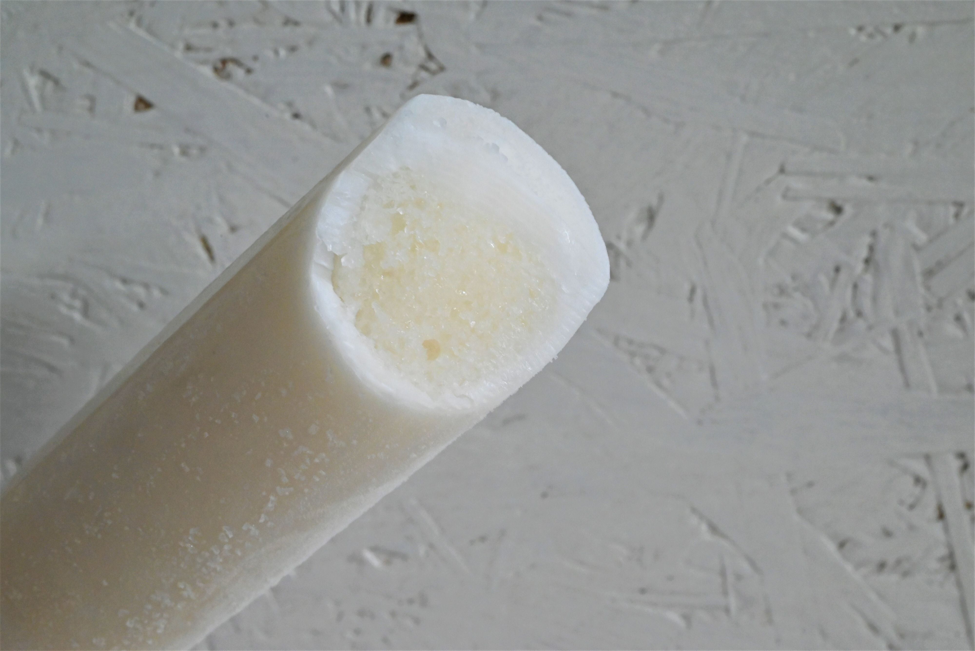 その名の通り、みぞれ氷が詰まった丸い棒状のアイスです。