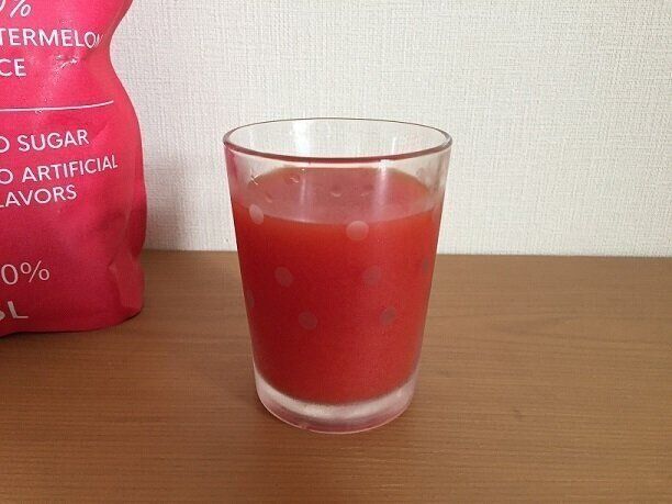 私が生まれて初めて飲んだスイカジュースがこれだったので、最初飲んだ時は衝撃的でした。まるでスイカそのもの。スイカの糖度の高い部分をぎゅぎゅっとしぼった贅沢な味わい。