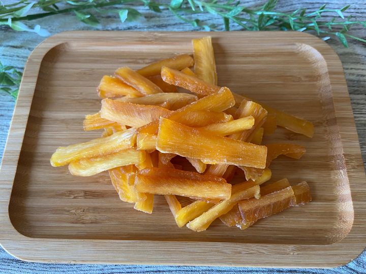 普通のドライパイナップルよりも甘さがきつくなく、少し甘いものを食べたいなという時にも便利な一品。