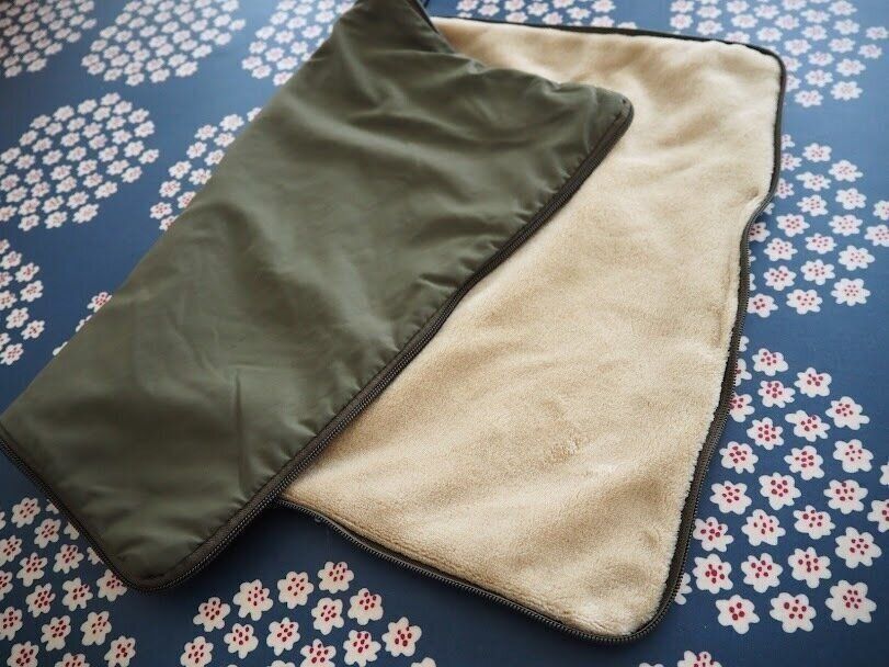ぐるりとファスナーになっているので、洗って乾かすのもすごく楽ですし、レインコートを収納しやすくなっています。