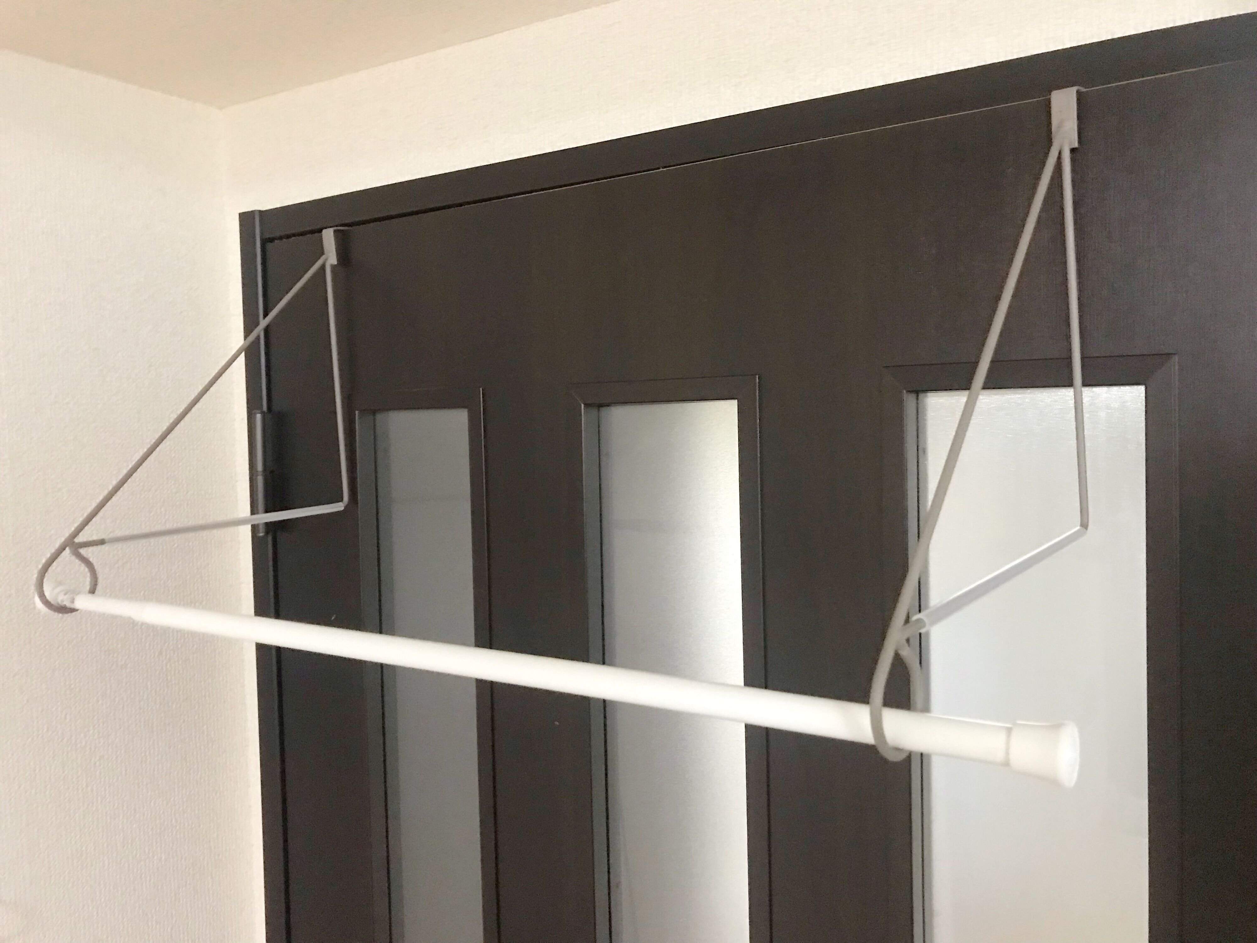 手持ちのツッパリ棒などを使えば室内干しスペースにもなります。お天気が悪い日が続いて部屋干しスペースが足りない時に大助かりですね。スリムなデザインなので使わない時も邪魔になりません。