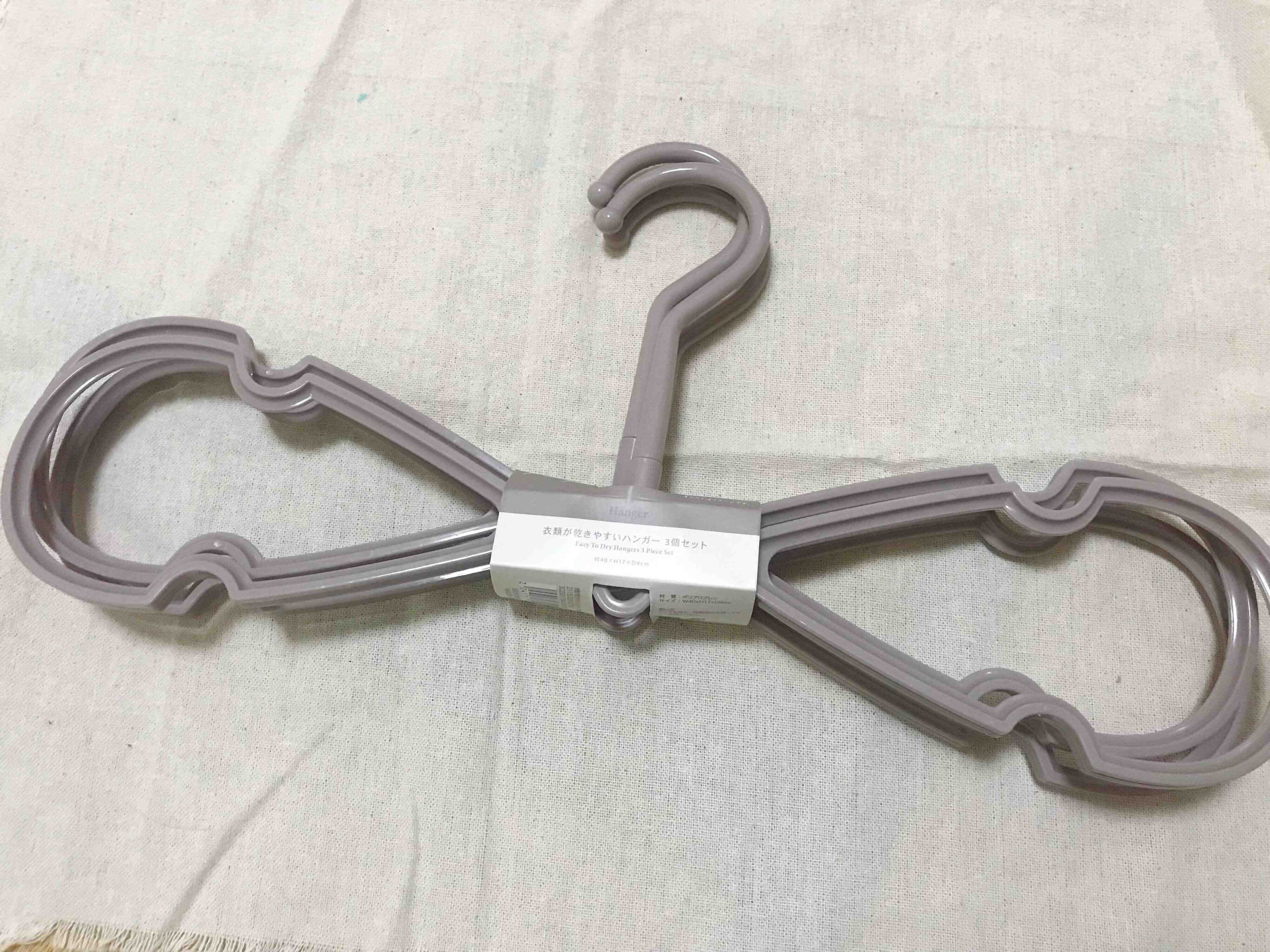室内干しは厚みのある衣類が乾きにくい。そんな悩みを解消してくれるのが「衣類が乾きやすいハンガー 3個セット」(330円)。梅雨時期だけではなく、オールシーズン活躍してくれるランドリーアイテムです。