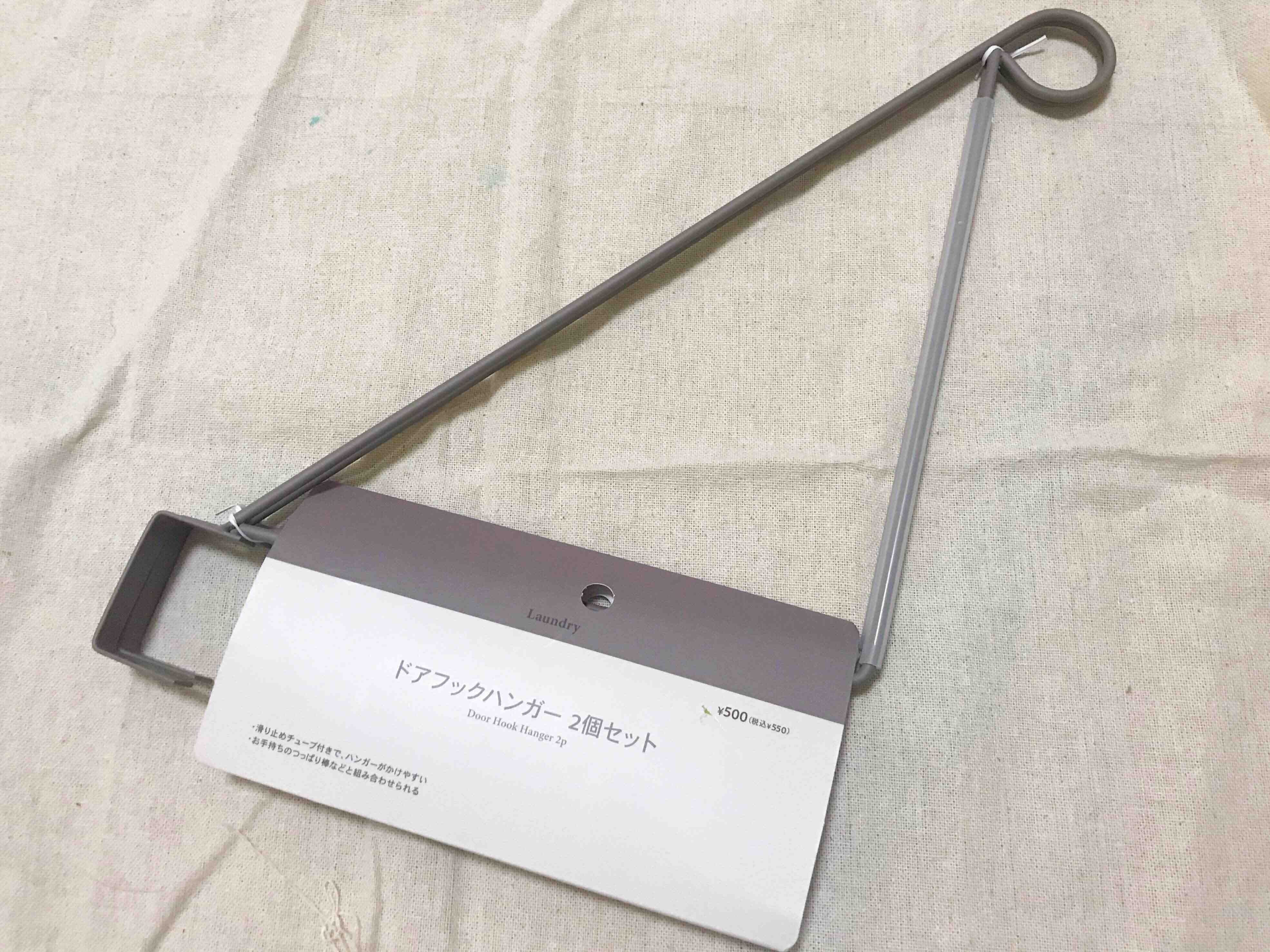 「ドアフックハンガー2個セット」(550円)は洗濯物を干す場所が足りない時におすすめのランドリーアイテム。厚み3~3.5cmのドアにフックを引っ掛ければ即席のハンガーラックになる優れものです。