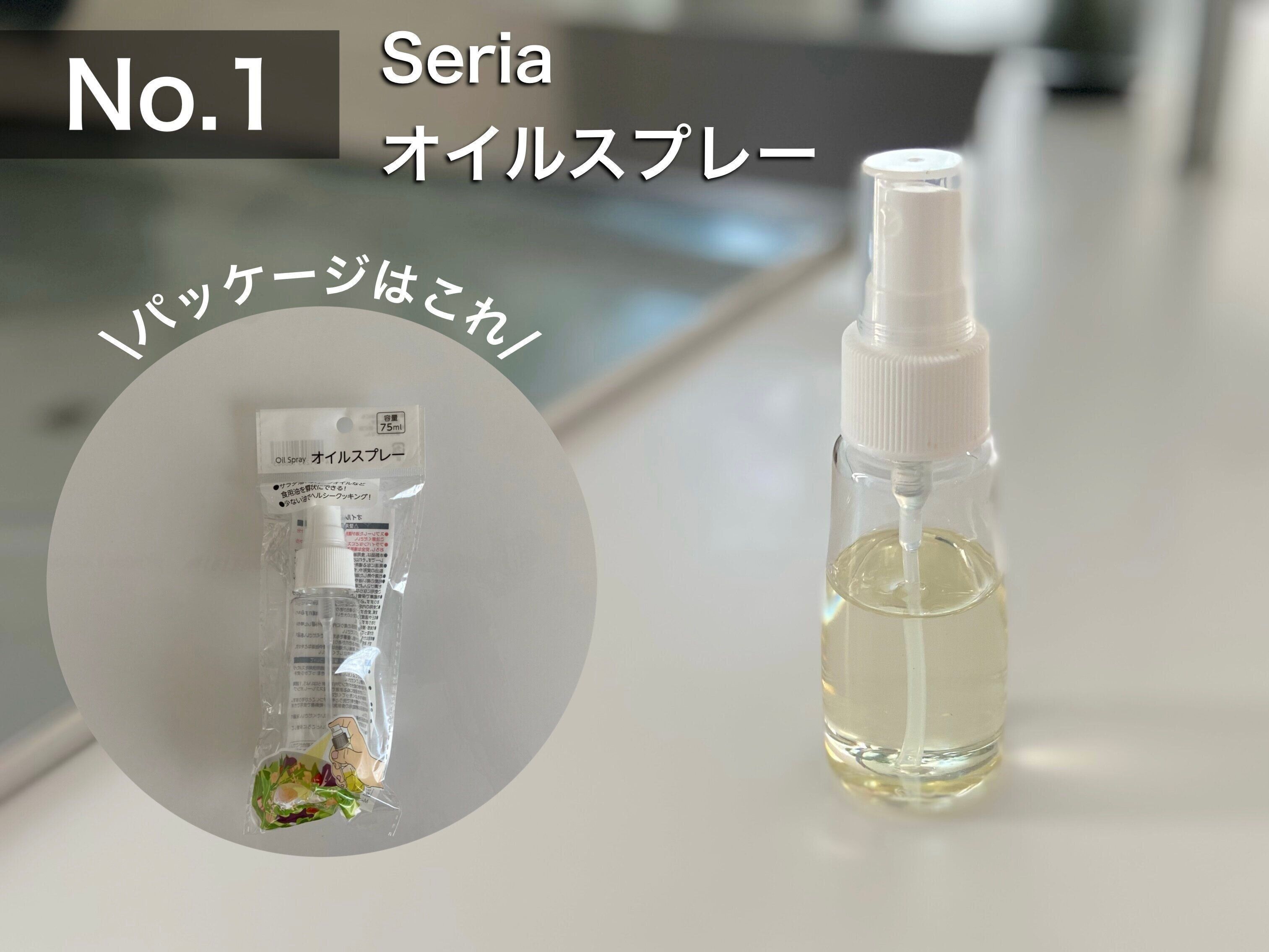 セリアで見つけたオイルスプレー。油を少しだけ出したいときに便利なので脂質を抑えたいかたや、調理中に少しだけ油を使いたいときに便利!