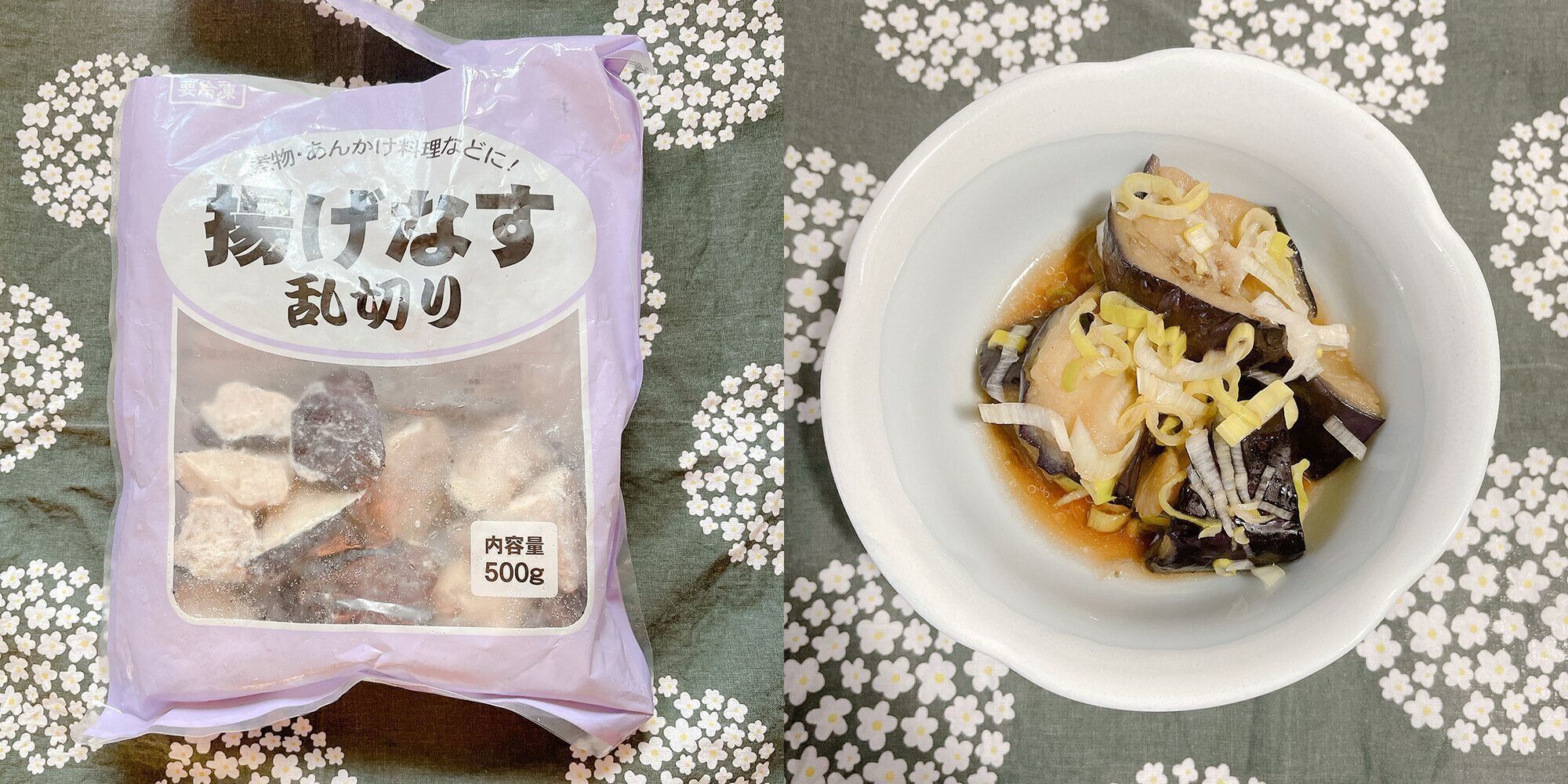 切らすことがないほどリピートしている揚げなす。揚げてあるから、解凍するだけでOK。