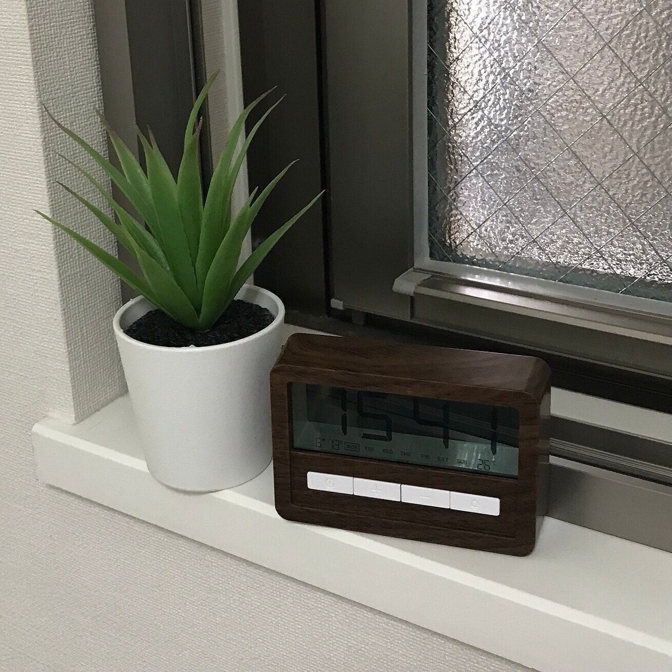 寝室の窓際に置いて使っています。木目調でシンプルなのでおしゃれで気に入っています。コンパクトサイズで小さいサイズの時計をお探しの方には特におすすめしたい商品です。