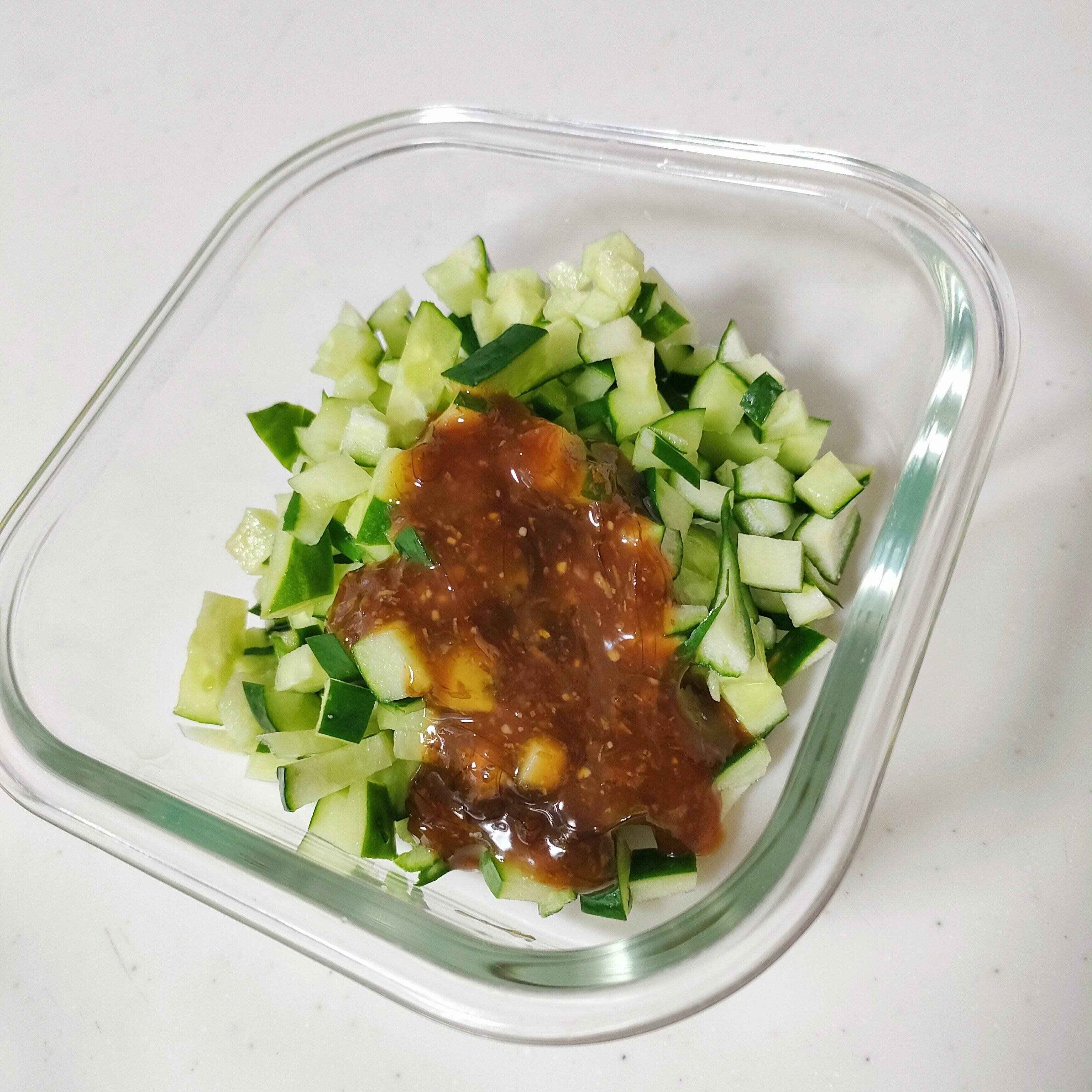 実際の調理方法は「きゅうり」一本だけをみじん切りにして調味料をまぜるだけ!