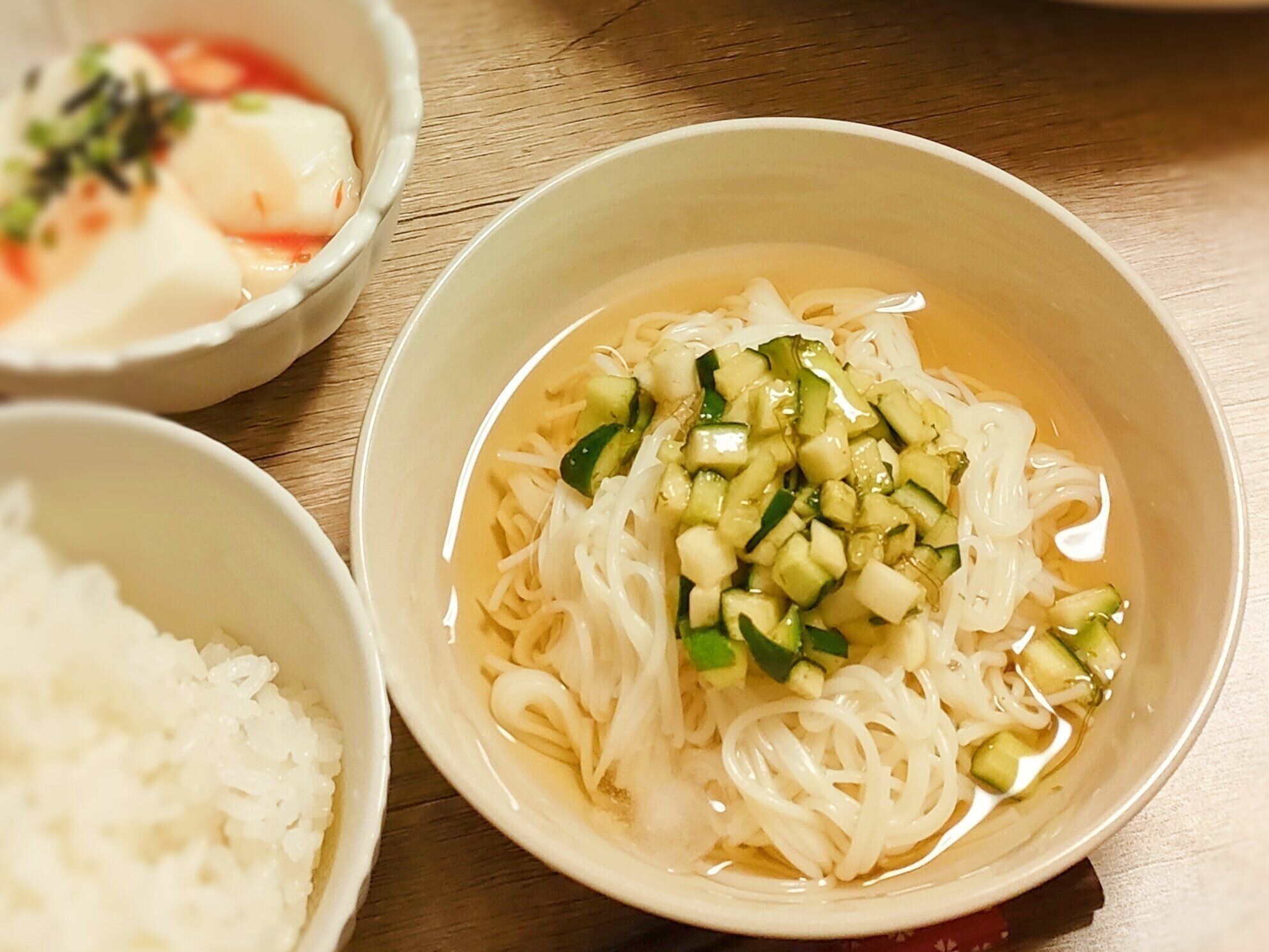 夏の風物詩であるそうめんにのせて食べたら、とってもおいしい!野菜もとれるし、塩分もしっかり、するするっと麺にからんで食べやすいです。