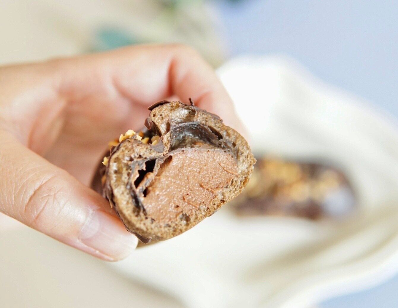 パフの中には、濃厚で甘くて、カカオの苦みも適度に感じられるクリームが。舌ざわりなめらかというよりは、少しザラッと舌にひっかかるようなぽってりとしたクリームです。しっかりとした存在感を発揮し、チョコの美味しさを存分に感じさせてくれます。