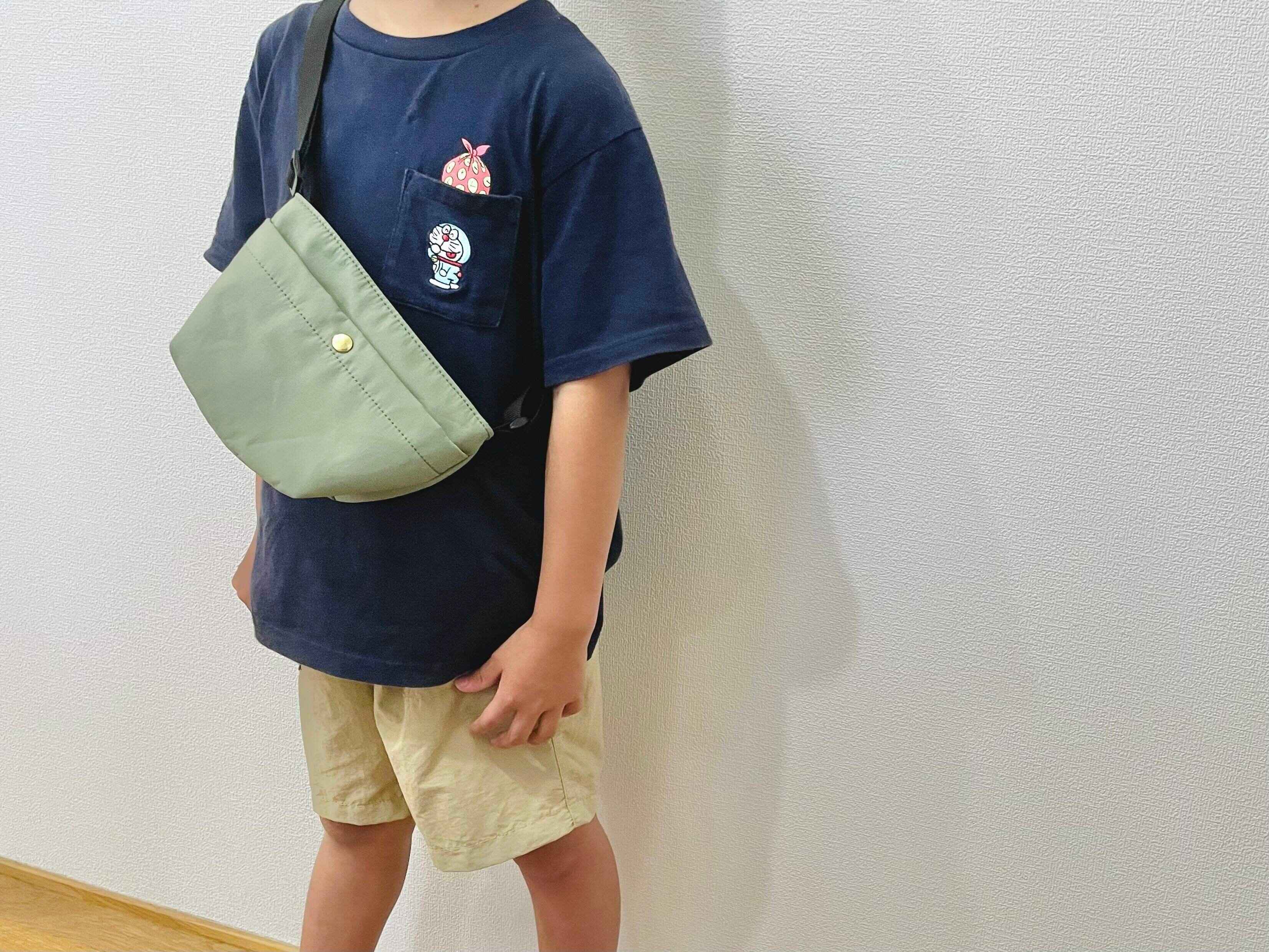 身長120cmの息子で、紐を1番短くしてつけるとピッタリ。ジッパー付きなので、走っても自転車に乗っても、落とし物の心配なし!