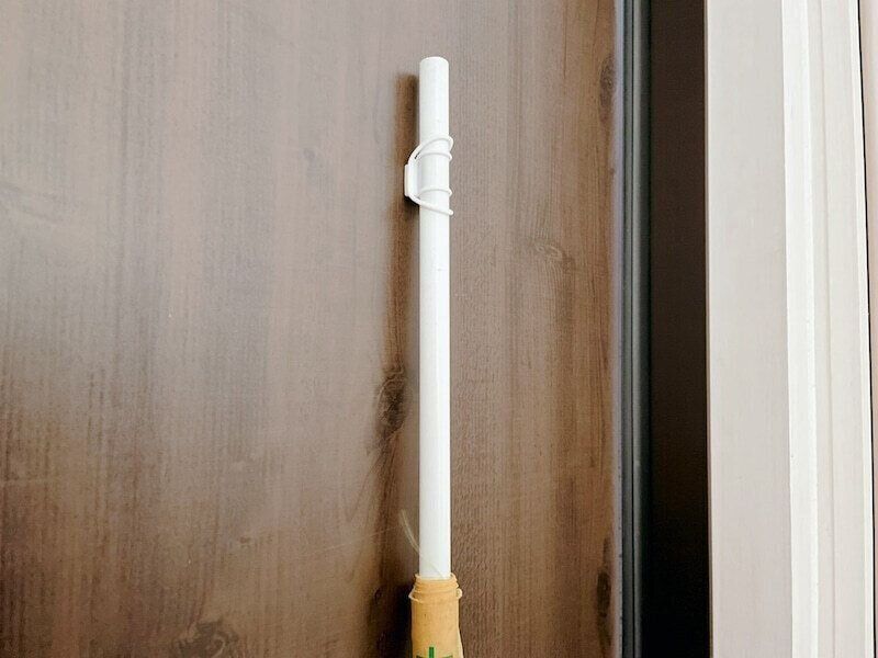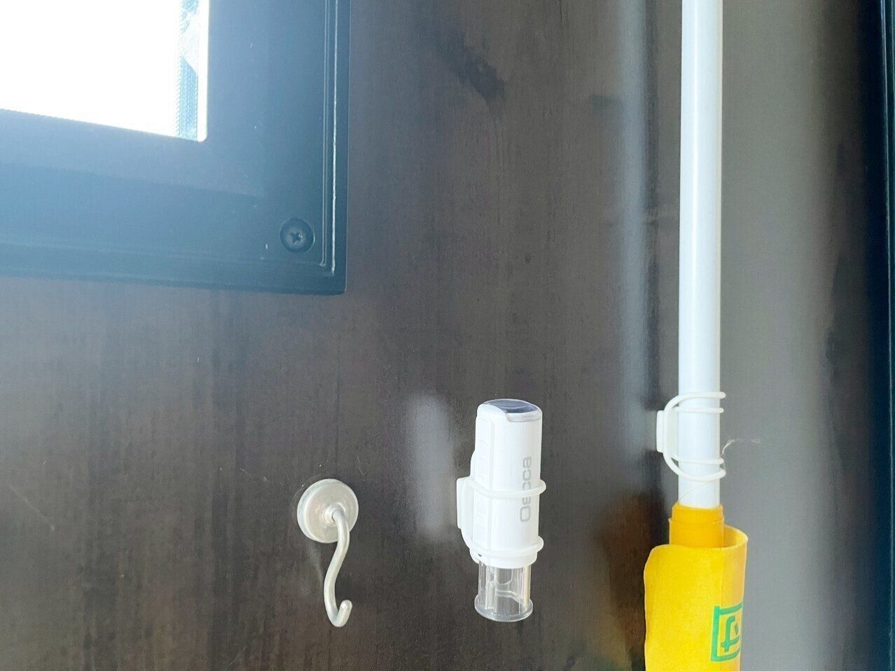 置き場所も悩む、かつ目につかない場所に置くと忘れていってしまうという問題が発生していた子どもの通学団の班旗。こちらをスッキリ玄関扉に浮かせるために使っているのもこのハンコホルダーです。