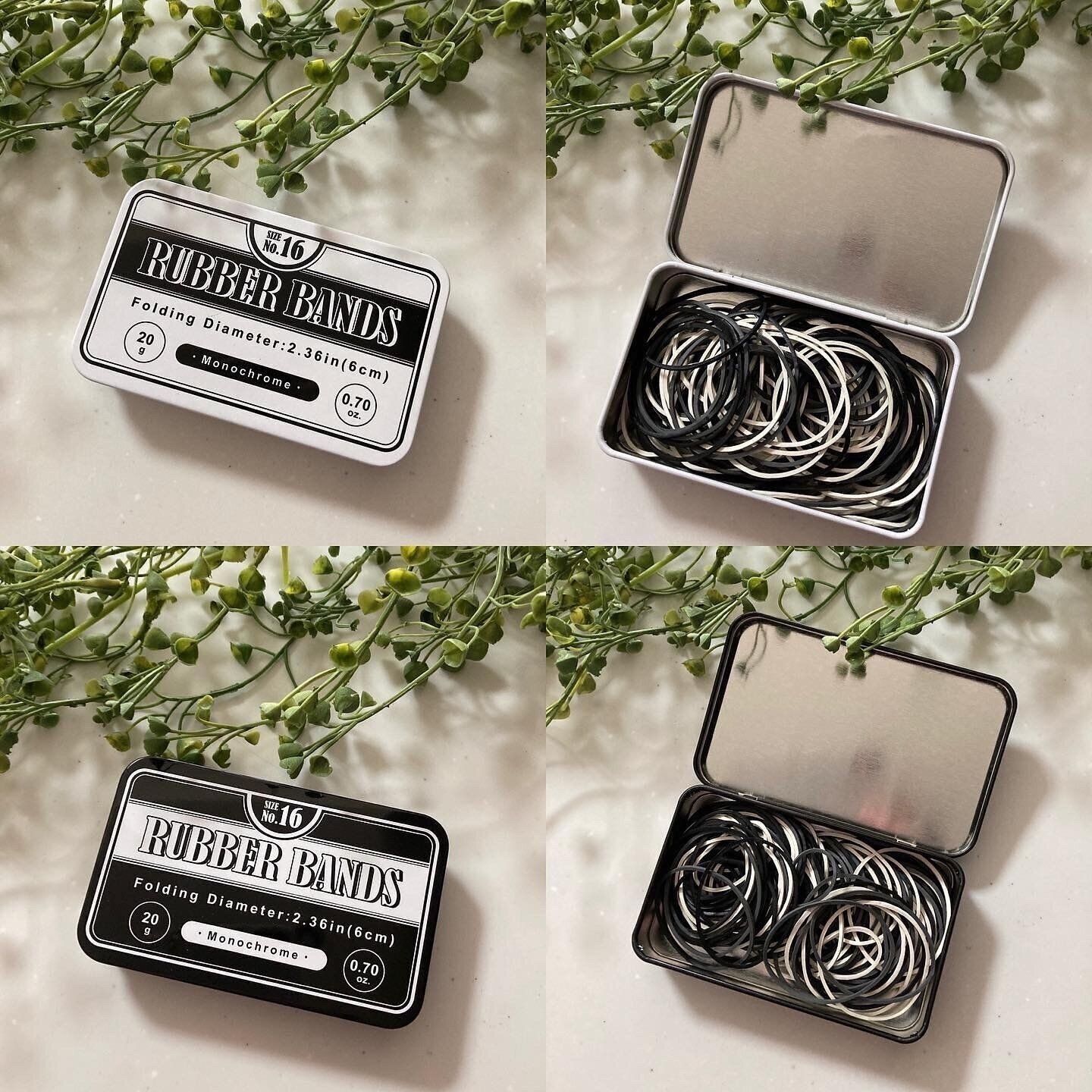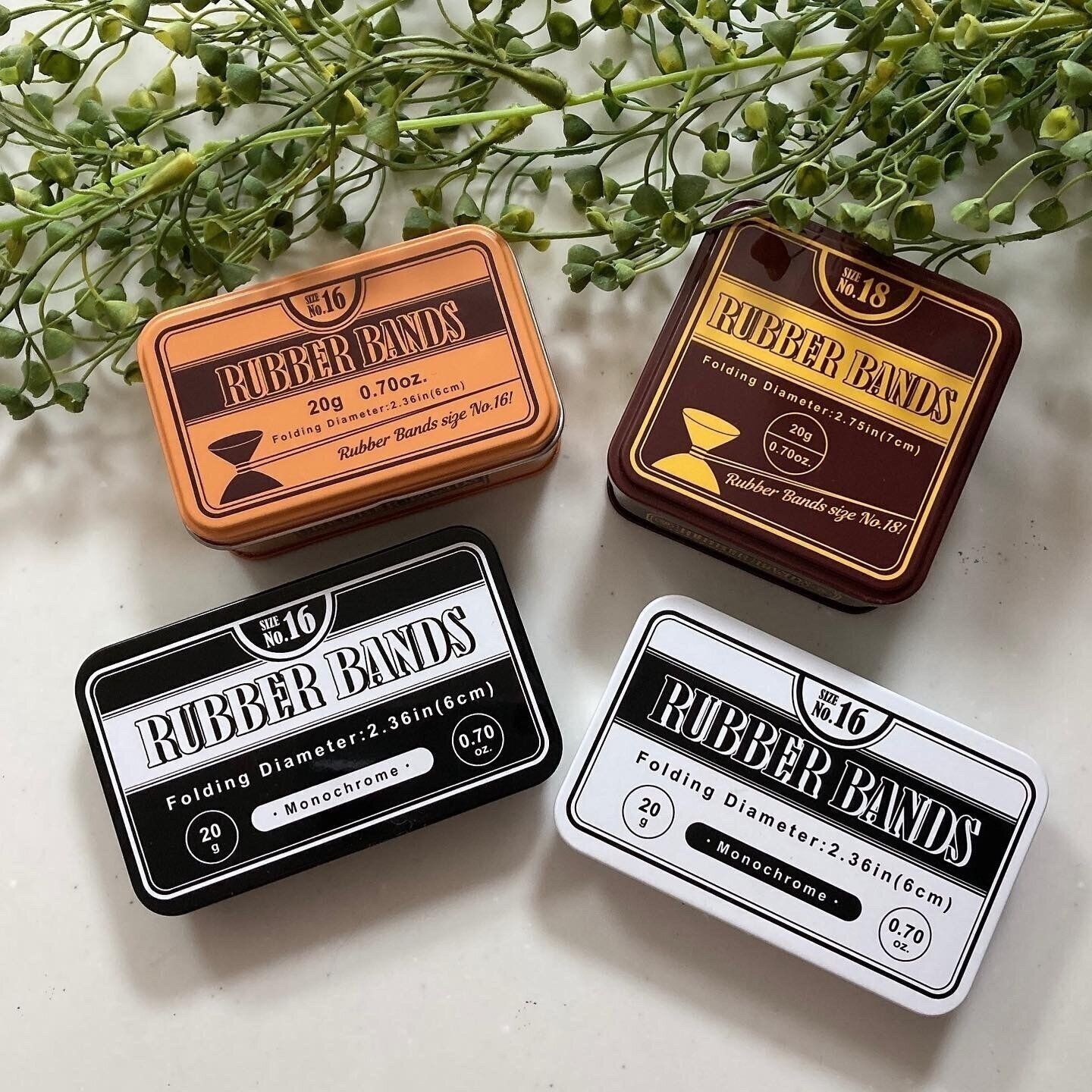 まさか中に輪ゴムが入っているとは思わないおしゃれなデザインの缶。たくさんあっても困らないのでついつい集めたくなる商品です。