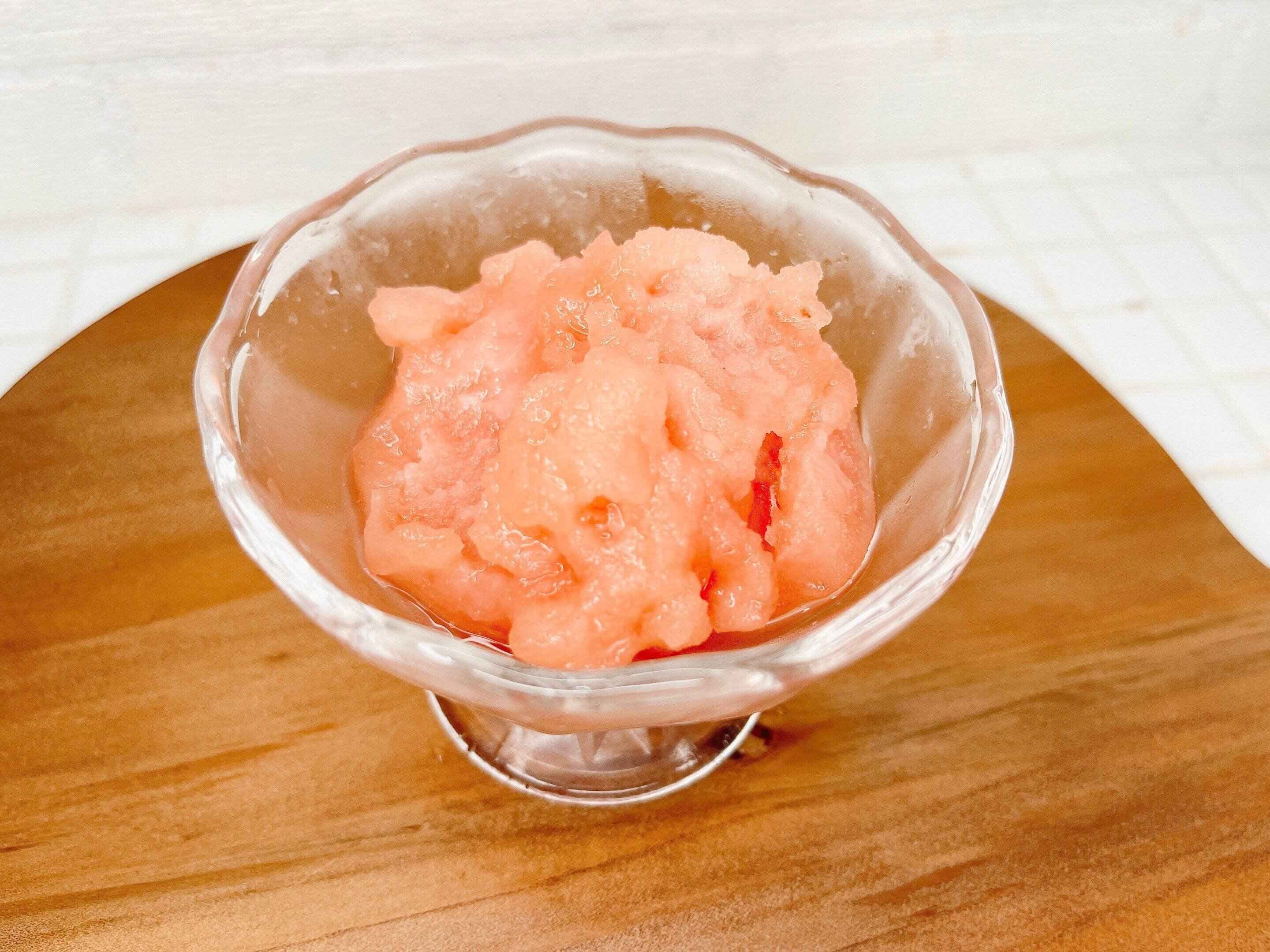 器に出してみましたが、かなりトロっとしたシャーベット状で、ジェラートの様ななめらかさです。