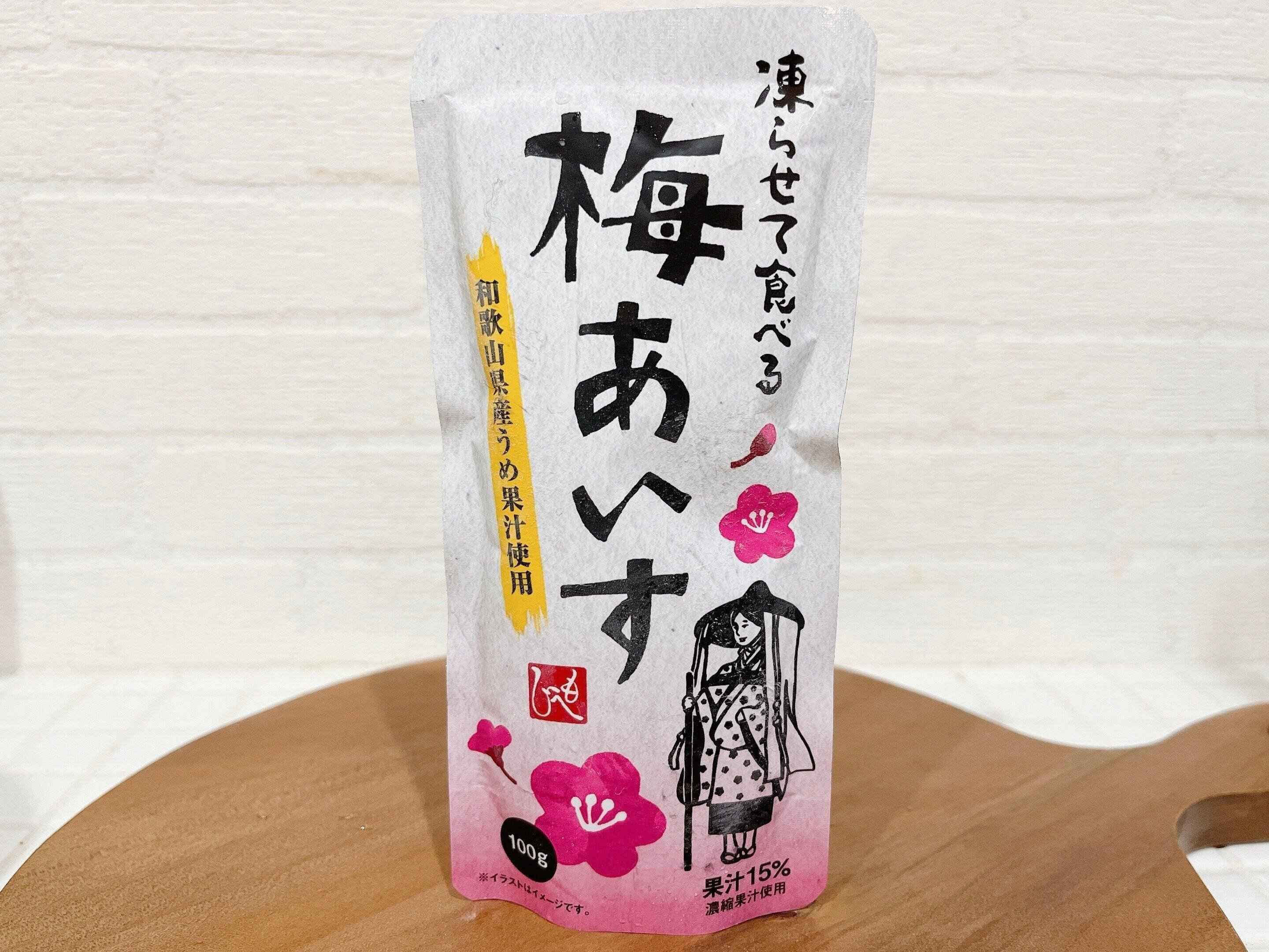 袋タイプで、常温で保存できる、凍らせてから食べる完熟した赤梅の香りが特徴的のアイスバーです。和歌山県産うめ果汁15%入りです。