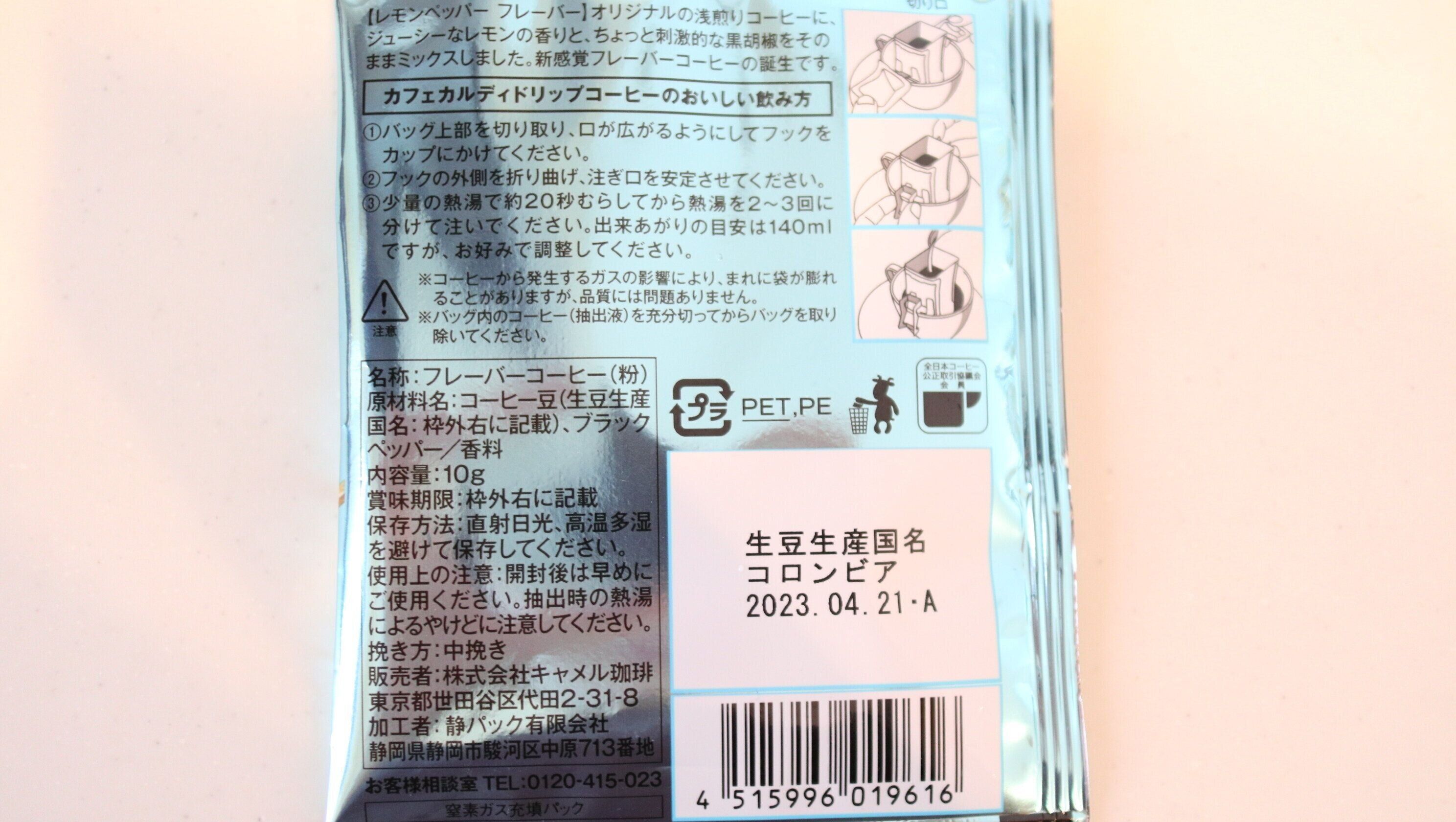 カフェカルディドリップ レモンペッパーフレーバーコーヒー