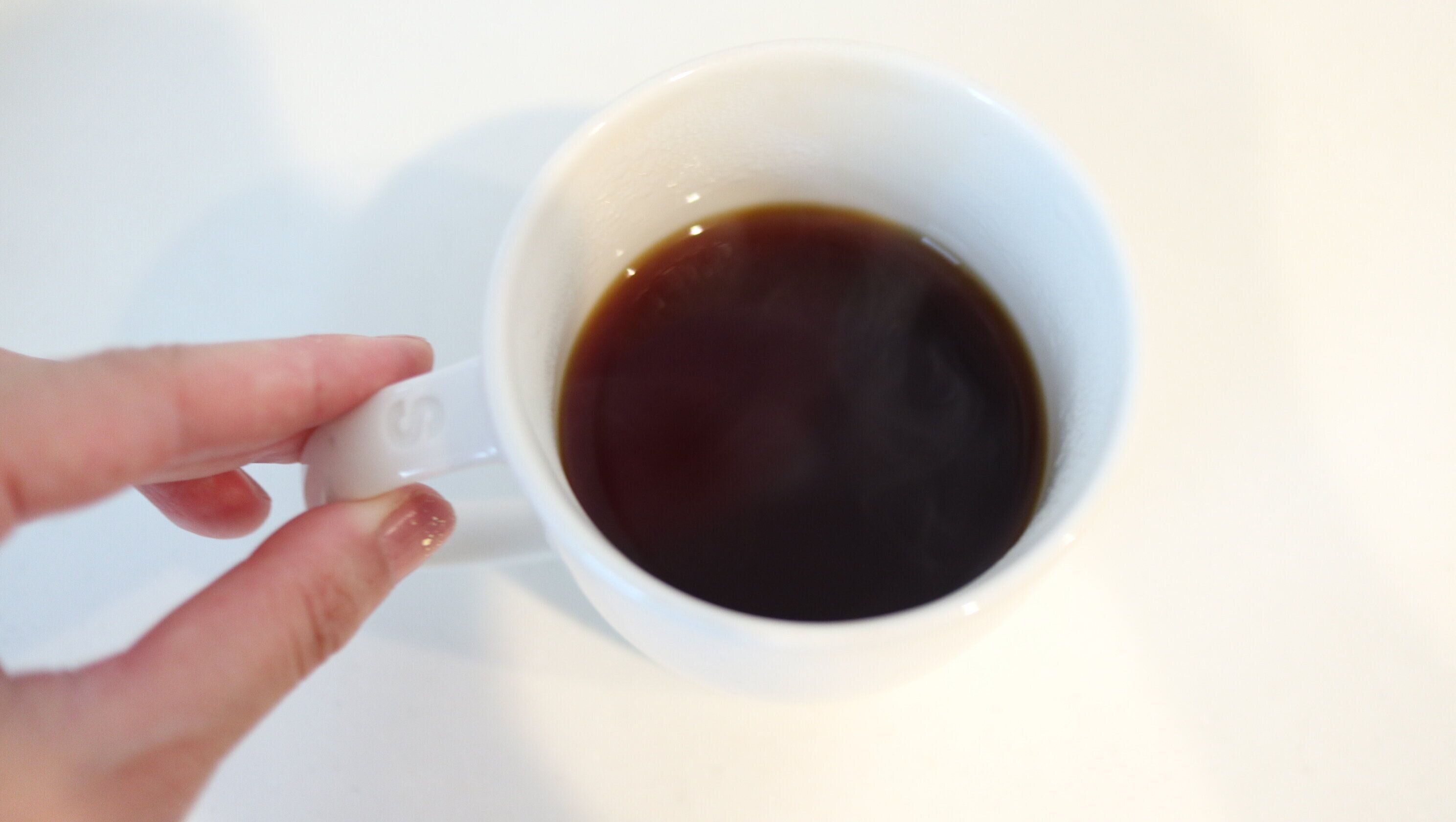 まずはホットで…口に入れた瞬間、レモンの酸味が広がる!レモンの風味が強いので、コーヒーの苦みはそんなに感じないです。酸味の後に、黒胡椒のピリッとした辛さがしっかりときて、まさに新感覚!
