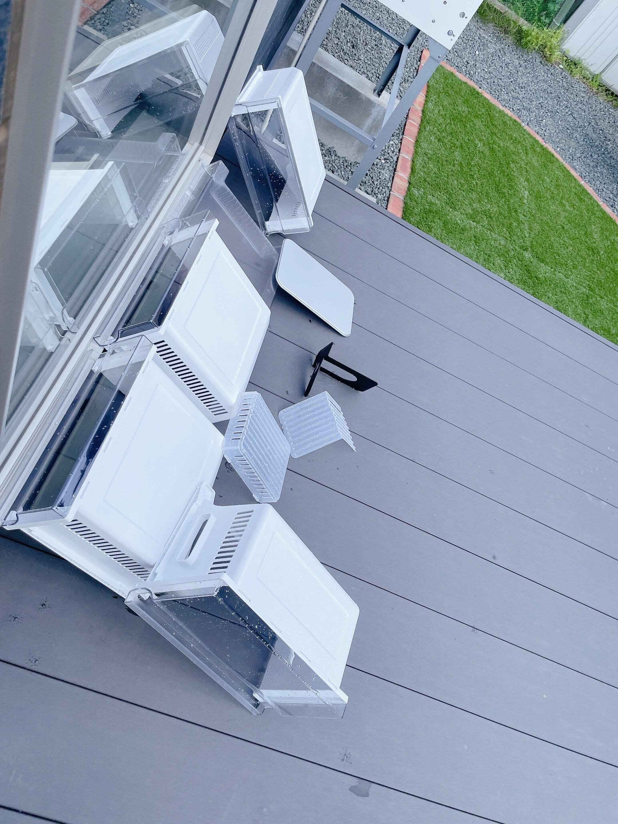 各部品や冷蔵庫の棚を丸洗いして、外側の拭き掃除をしたら、先に洗ったものたちは綺麗に乾いています。拭き上げすることなく、すぐ元に戻すことが出来て掃除もスムーズに。