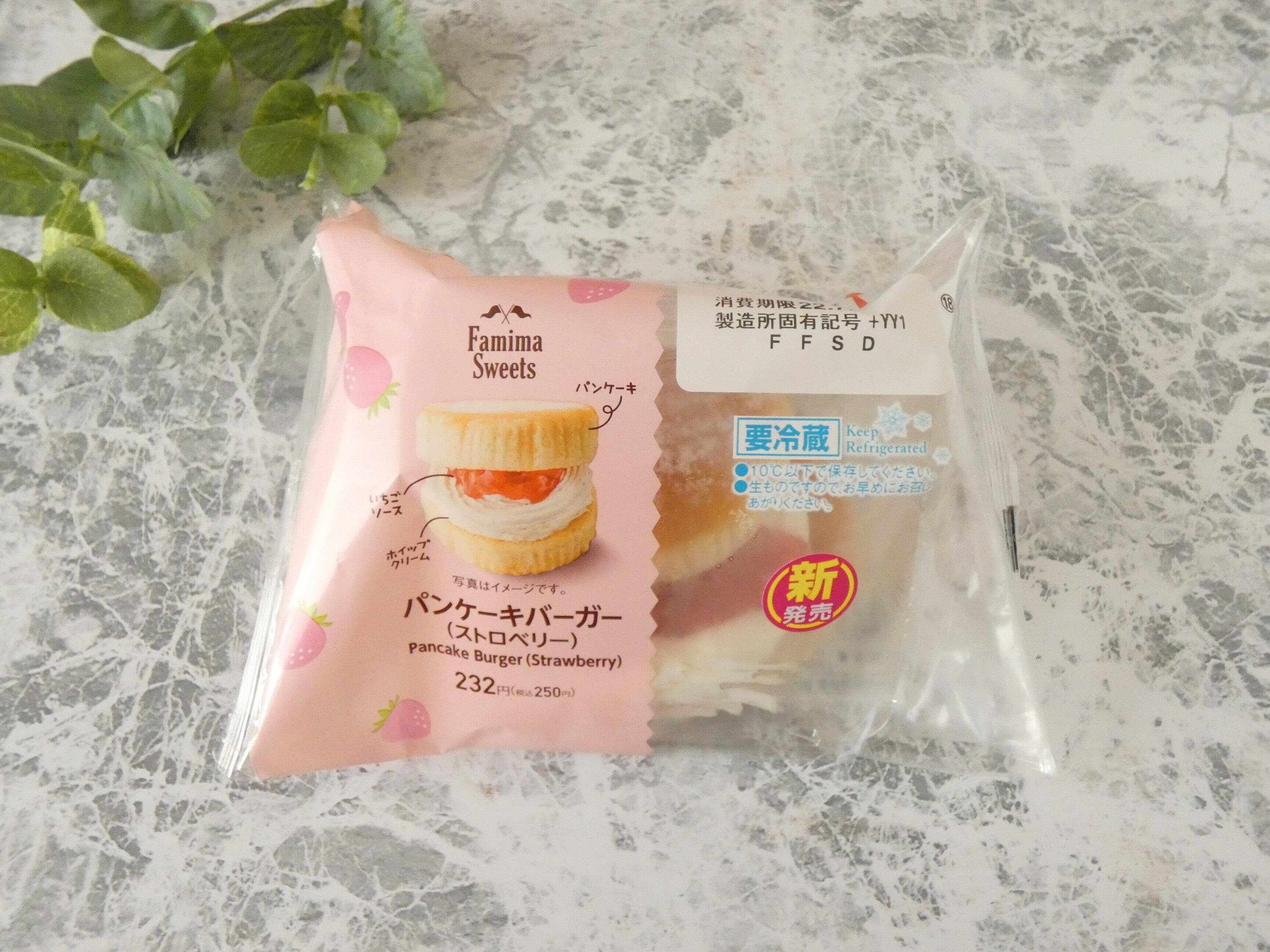 ファミリーマート新発売「パンケーキバーガー(ストロベリー」は250円。