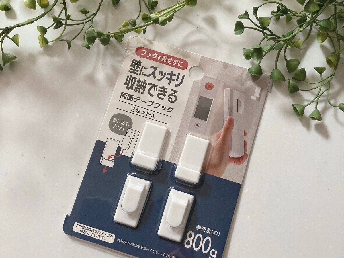 セリアには壁掛け収納ができるアイテムがあります。リモコンをスッキリ収納できるフックです。