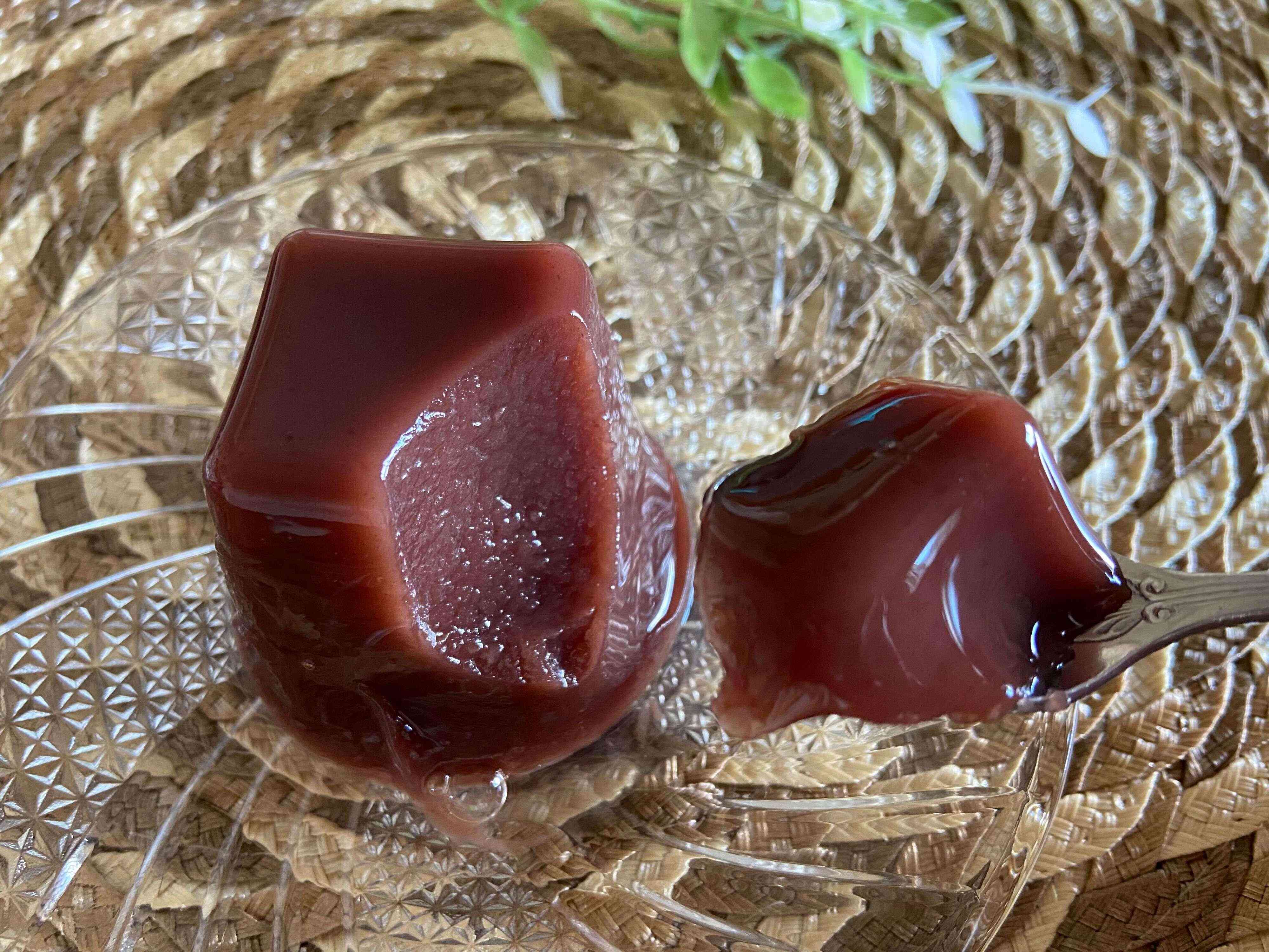 小豆の風味が口いっぱいに広がり、みずみずしくてとてもおいしい!小豆の味を引き立てる控えめな甘さのバランスがよくて、くどくないさっぱりとした味わい。