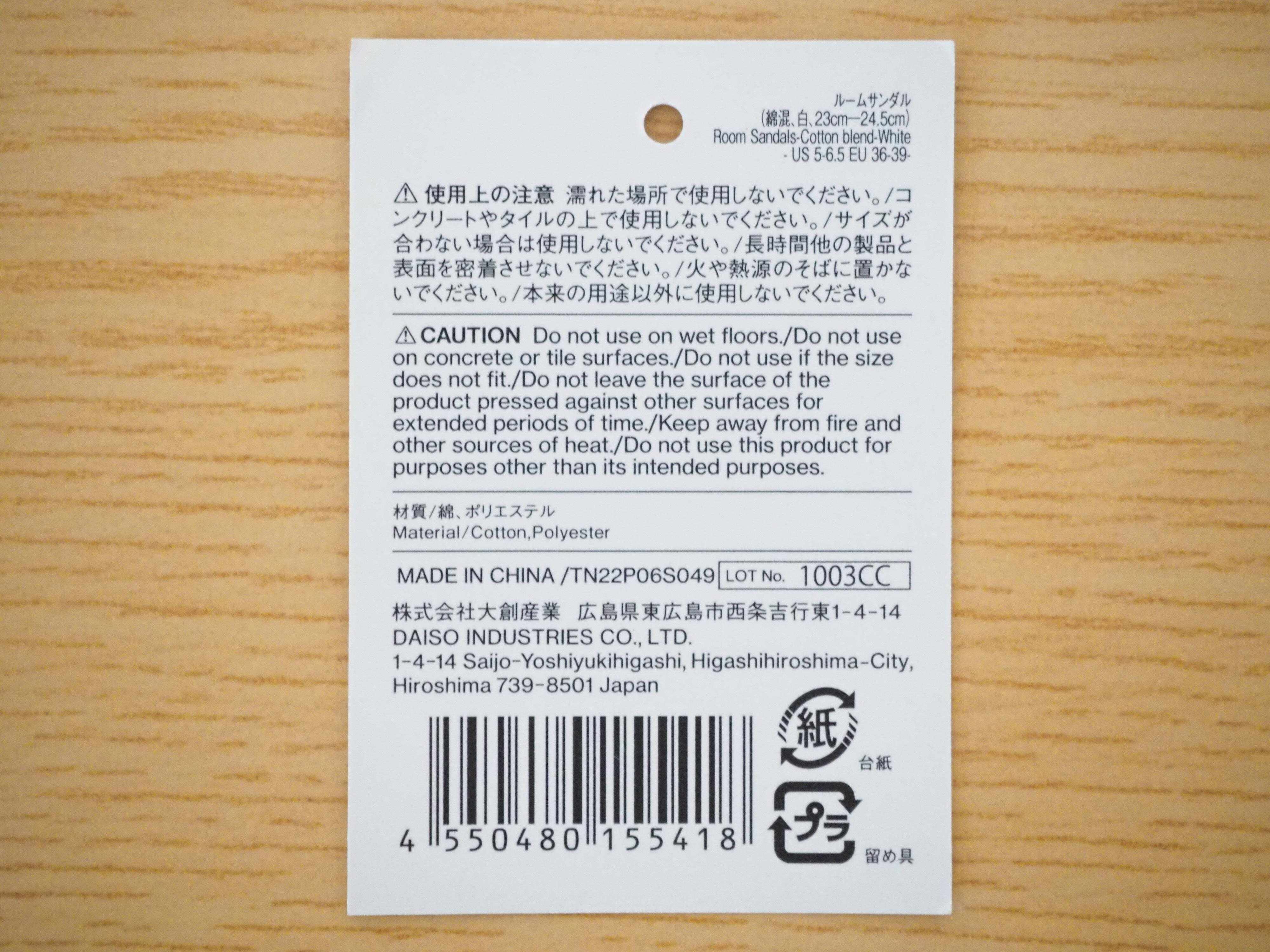 こちらが「ルームサンダル」で、価格は330円。使う人と家を選ばないシンプルなデザインも手に取りたくなる理由の1つ。