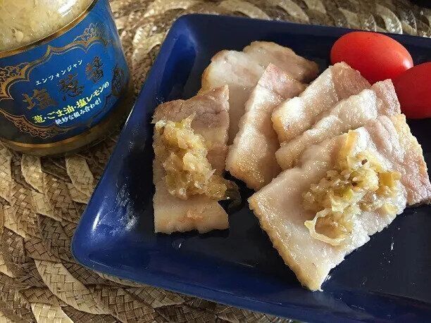 蒸し鶏や冷奴、炒飯などいろいろな料理に使える塩葱醤ですが、一番のお気に入りは厚切りの豚バラ肉と合わせる食べ方。焼肉屋さんで出てくるネギダレのような味なので、抜群にお肉に合うんです。爆売れした姜葱醤も大好きですが塩葱醤も同じくらい大好きな、我が家では欠かせない調味料です。