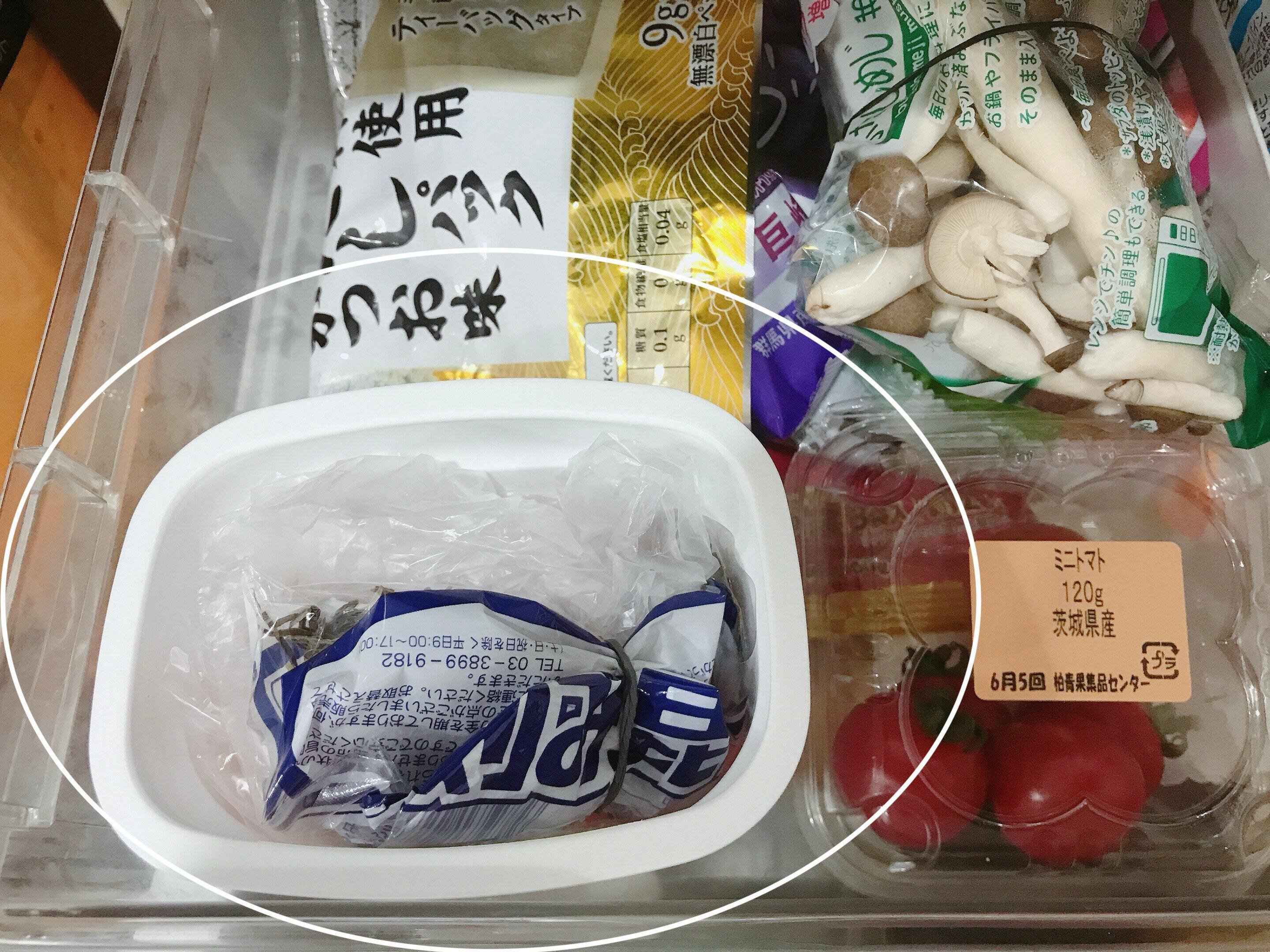 冷蔵庫の中の半端野菜は、区別しておかないと食べ忘れて「食品ロス」になってしまいます。このヨーグルトカップに半端野菜を入れておけば、ここから優先的に食材を使うようになります。わかりやすく、食品ロスも防ぐことができます。