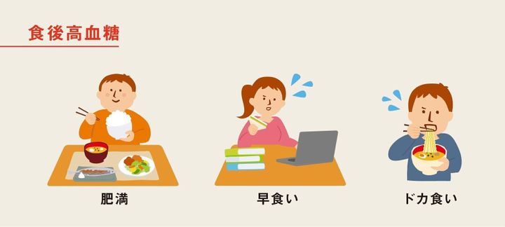 また、食後に血糖値が急激に上昇する「食後高血糖」も、慢性炎症を引き起こす原因の1つ。食後高血糖は肥満の人だけでなく、若い人ややせている人でもなるのだとか!特に早食い・ドカ食いをする人は要注意です。
