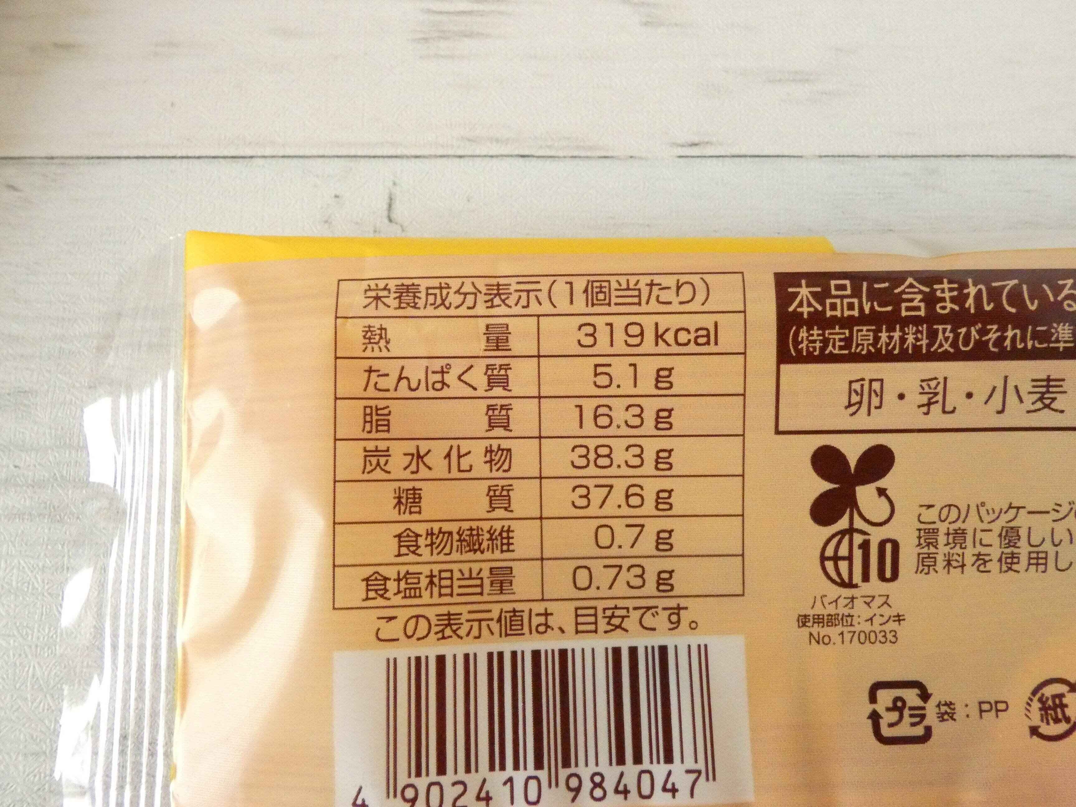 栄養成分表示を見ると1個のエネルギーは319kcal。