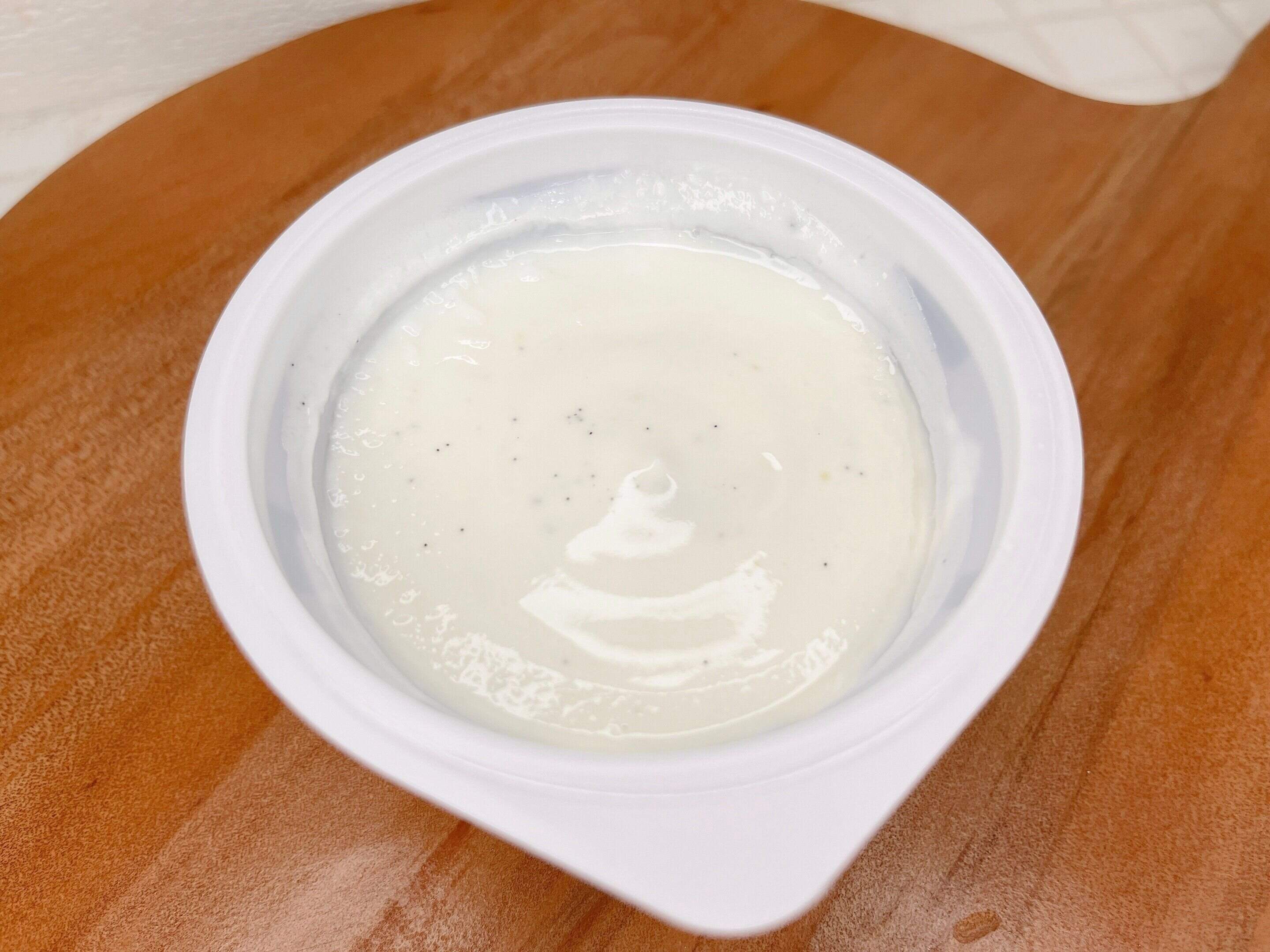オイコス特有の弾力のあるネットリした食感がクリーミーでバニラ味との相性抜群です。ヨーグルトの酸味が弱いので、ヨーグルトと言うよりはスイーツ感覚かもしれません。