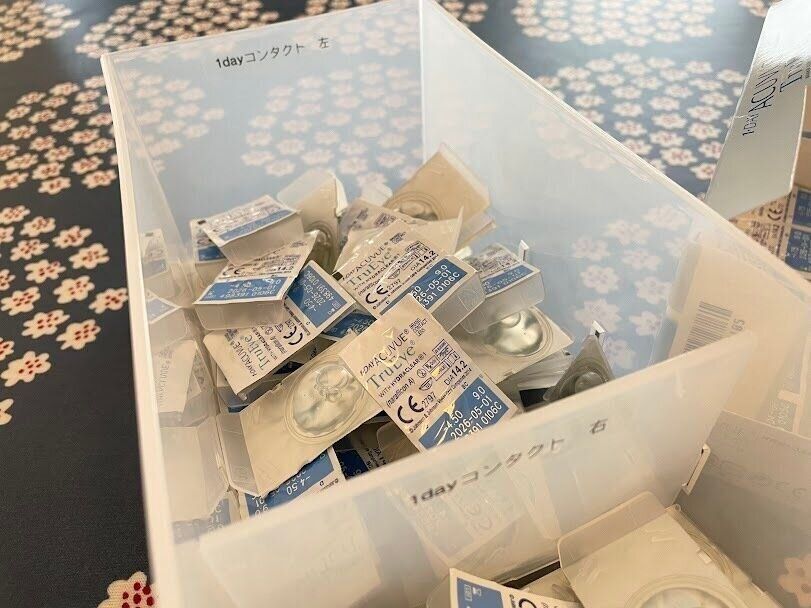 レンズケアをする必要がない、1day使い捨てコンタクトレンズ。毎日新しいレンズを装着するため目に優しく、メガネと併用もしやすいので、1day使い捨てコンタクトレンズを使用されている方も多いと思います。1dayだと交換頻度が高いので数ヶ月分の在庫ストックが必要だったり、箱から取り出してレンズを切り離す手間が意外とめんどくさかったりします。そんな手間がなくなる収納法をご紹介したいと思います!