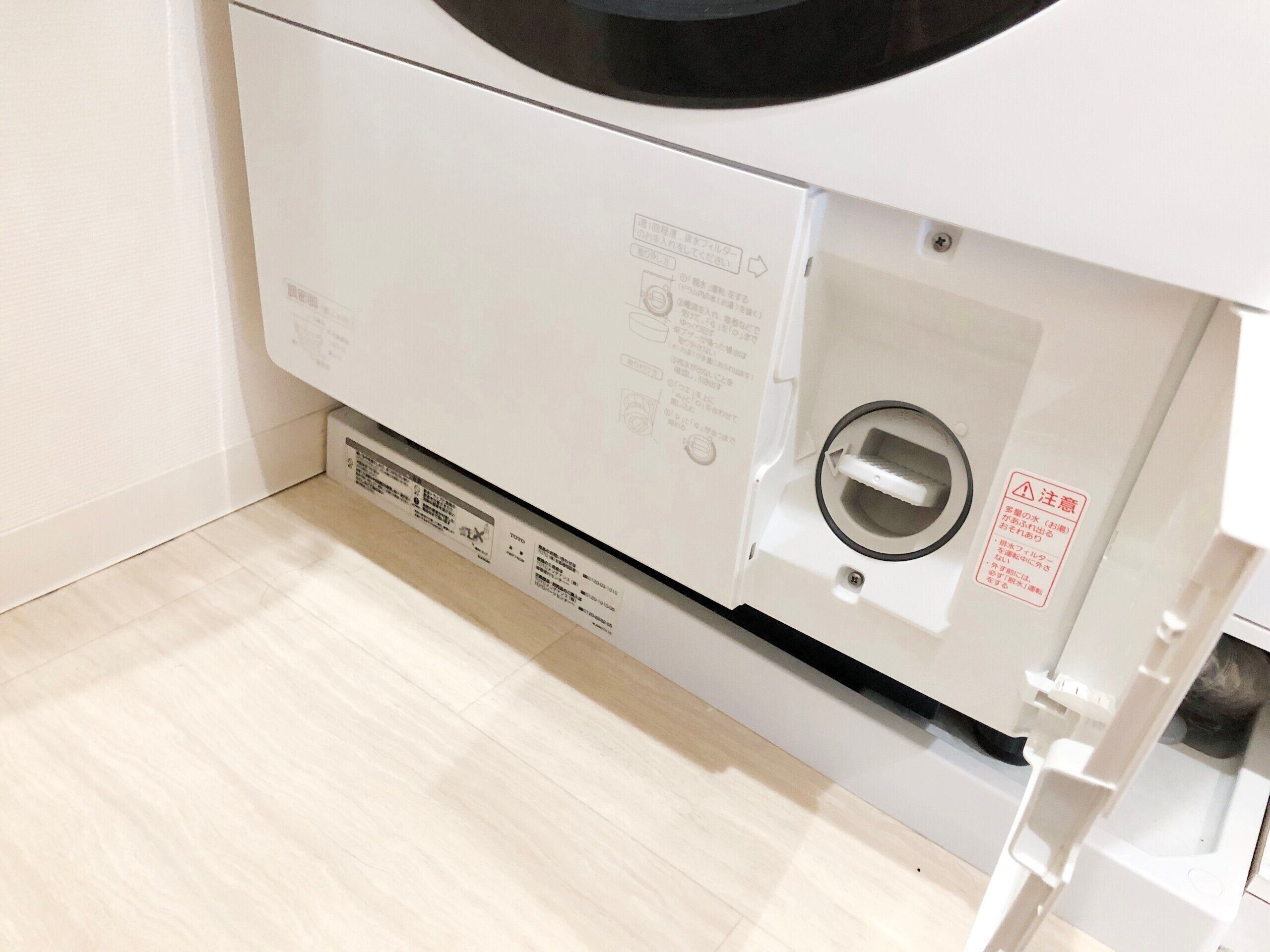 まずドラム式洗濯機の排水フィルターを取り外し、汚れていたら綺麗に洗います。