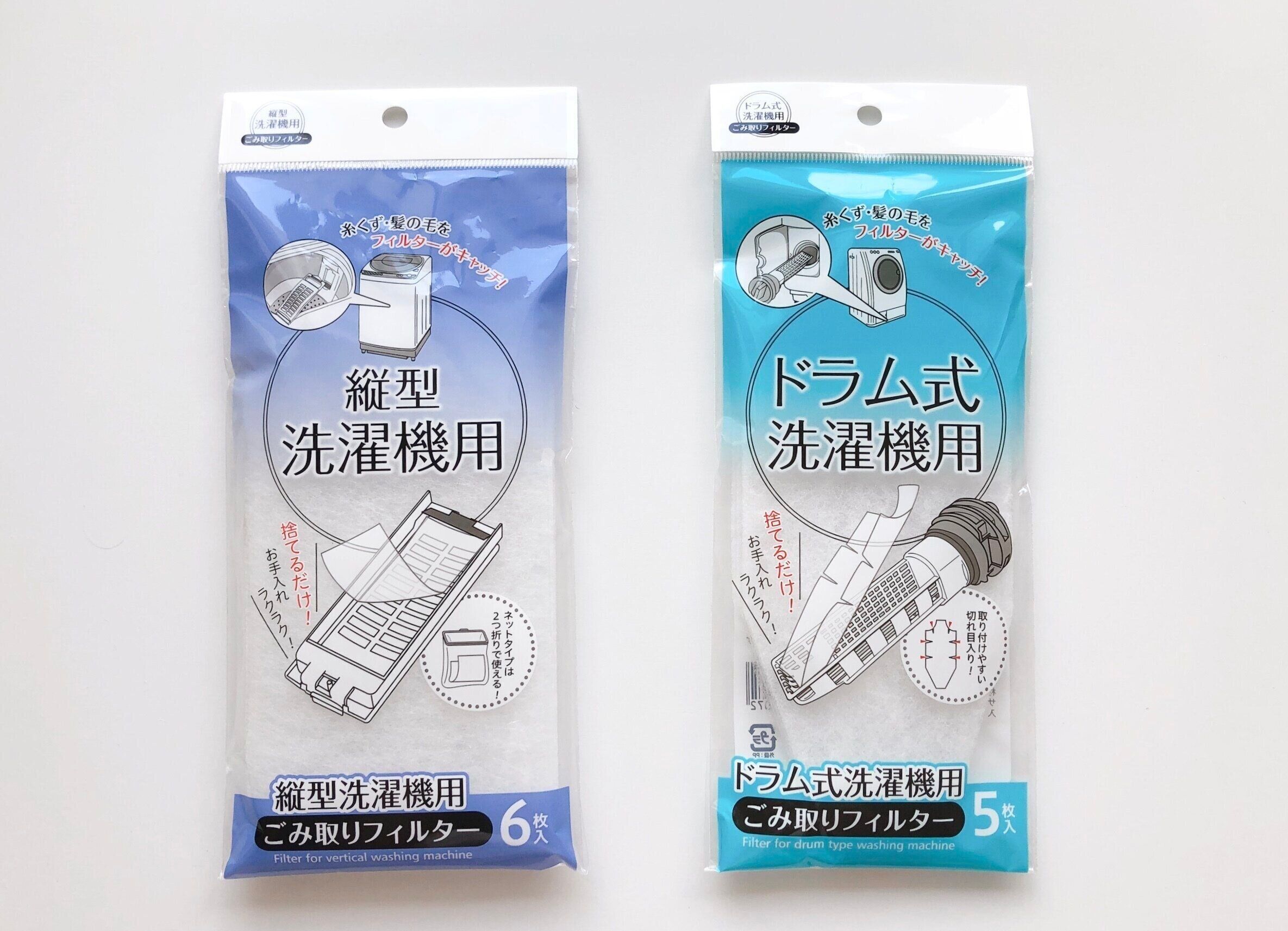 セリアの『洗濯機用ごみ取りフィルター』は、汚れたらフィルターを取り替えるだけでOK!