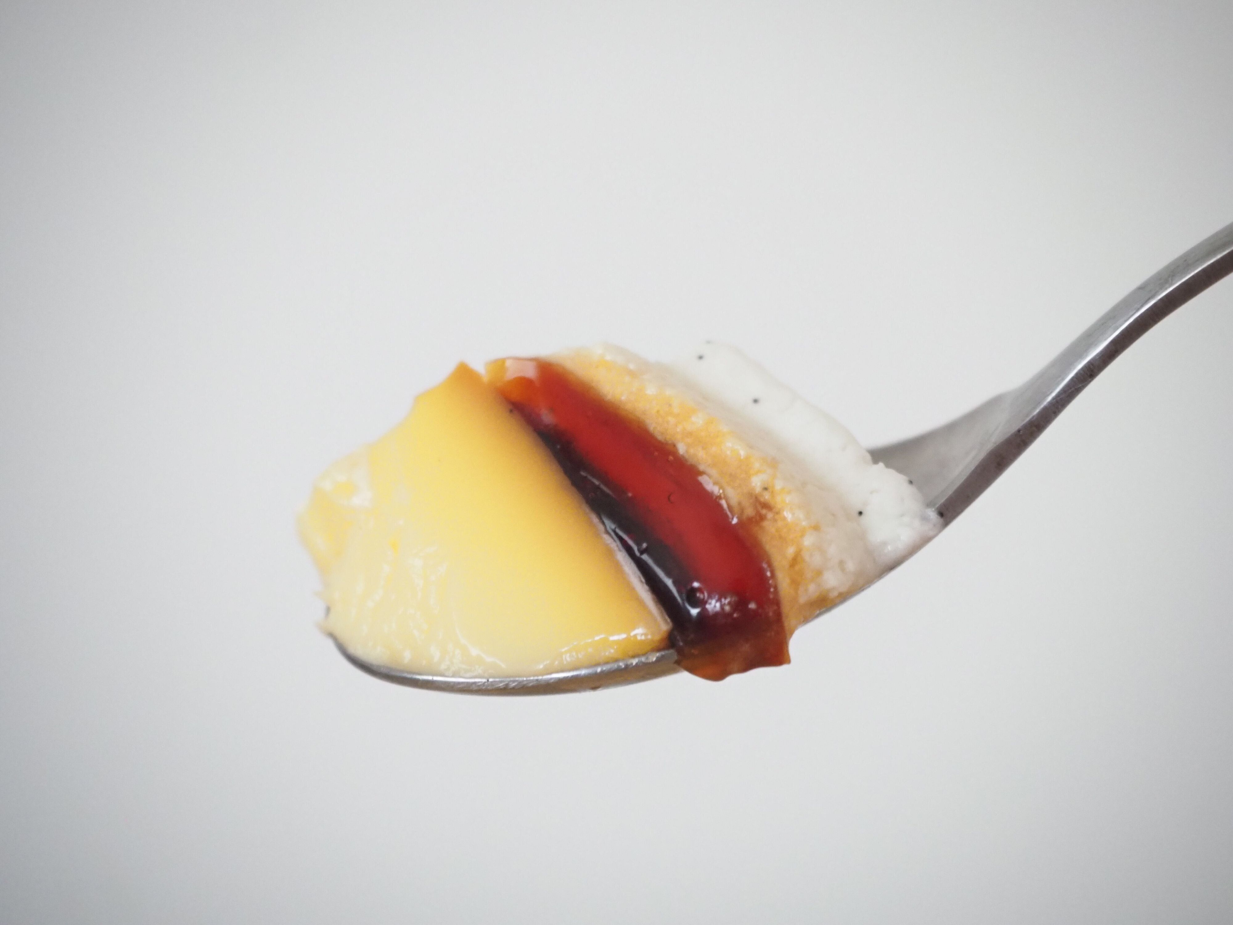 このプリンがチーズクリームと合わさると、とろけるような食感に。チーズの風味も程よく中和されて、最後の一口まで飽きずに食べることができました。