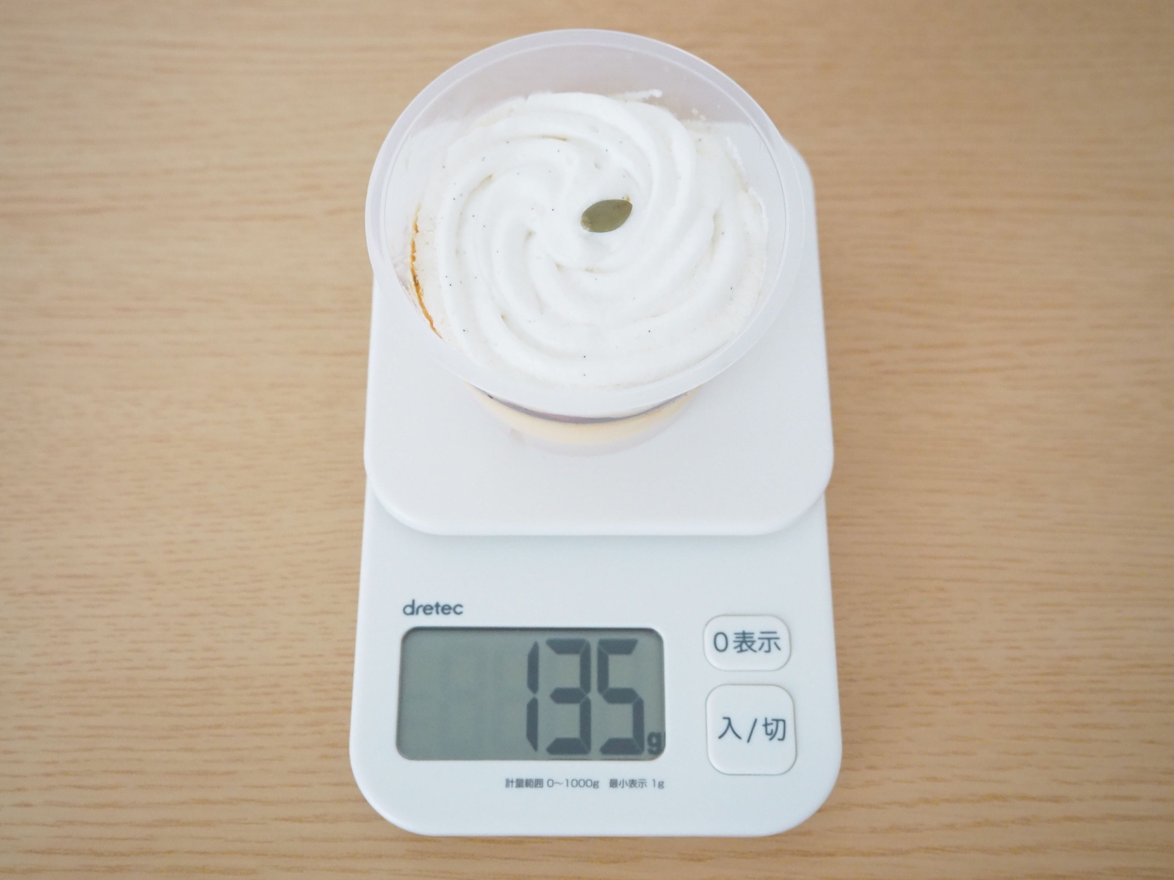 重さを量ったところ135gでしたが、容器の重さが13gなので、実際には122gです。