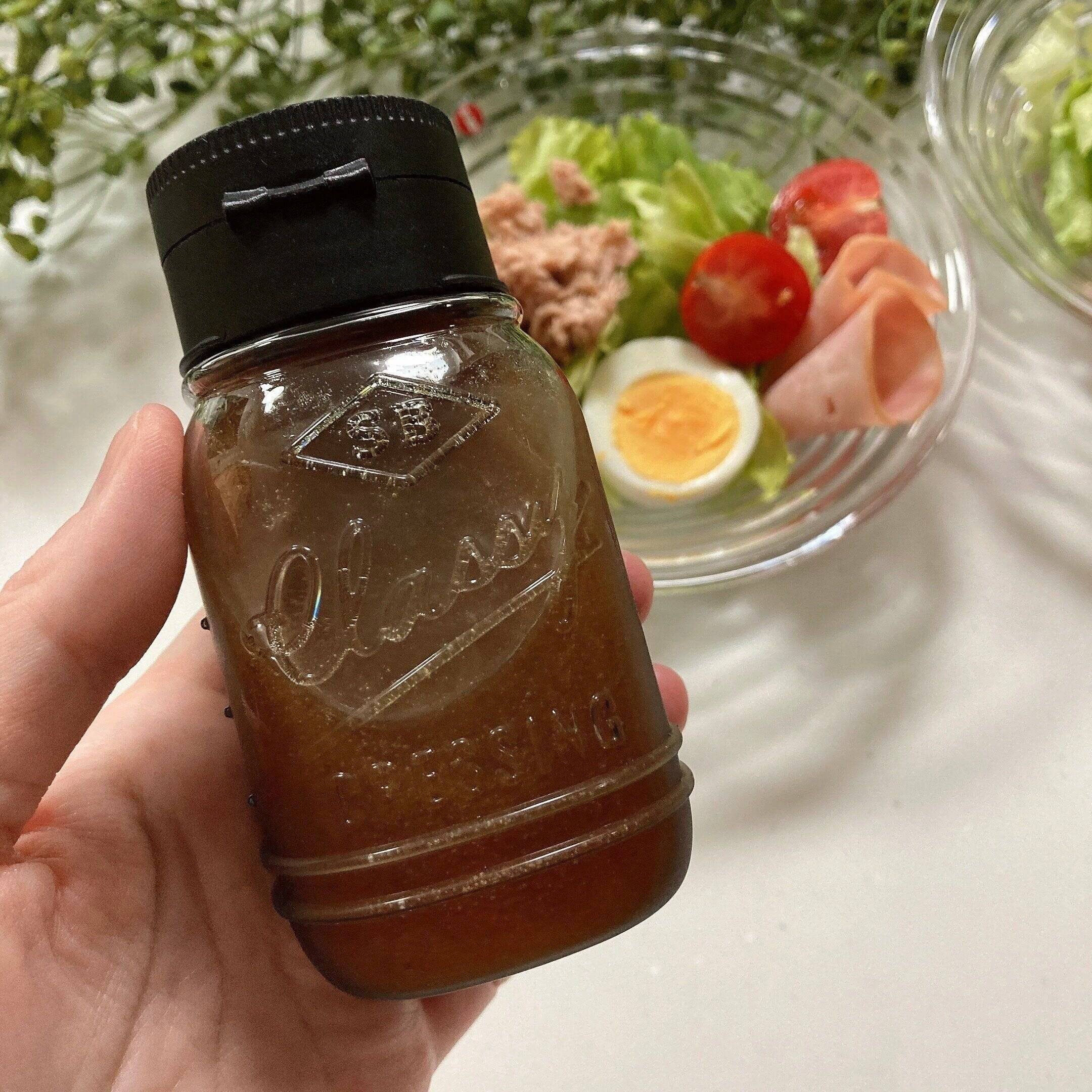 いつものサラダをおしゃれなドレッシングボトルに入れ替えてちょっとおしゃれに!