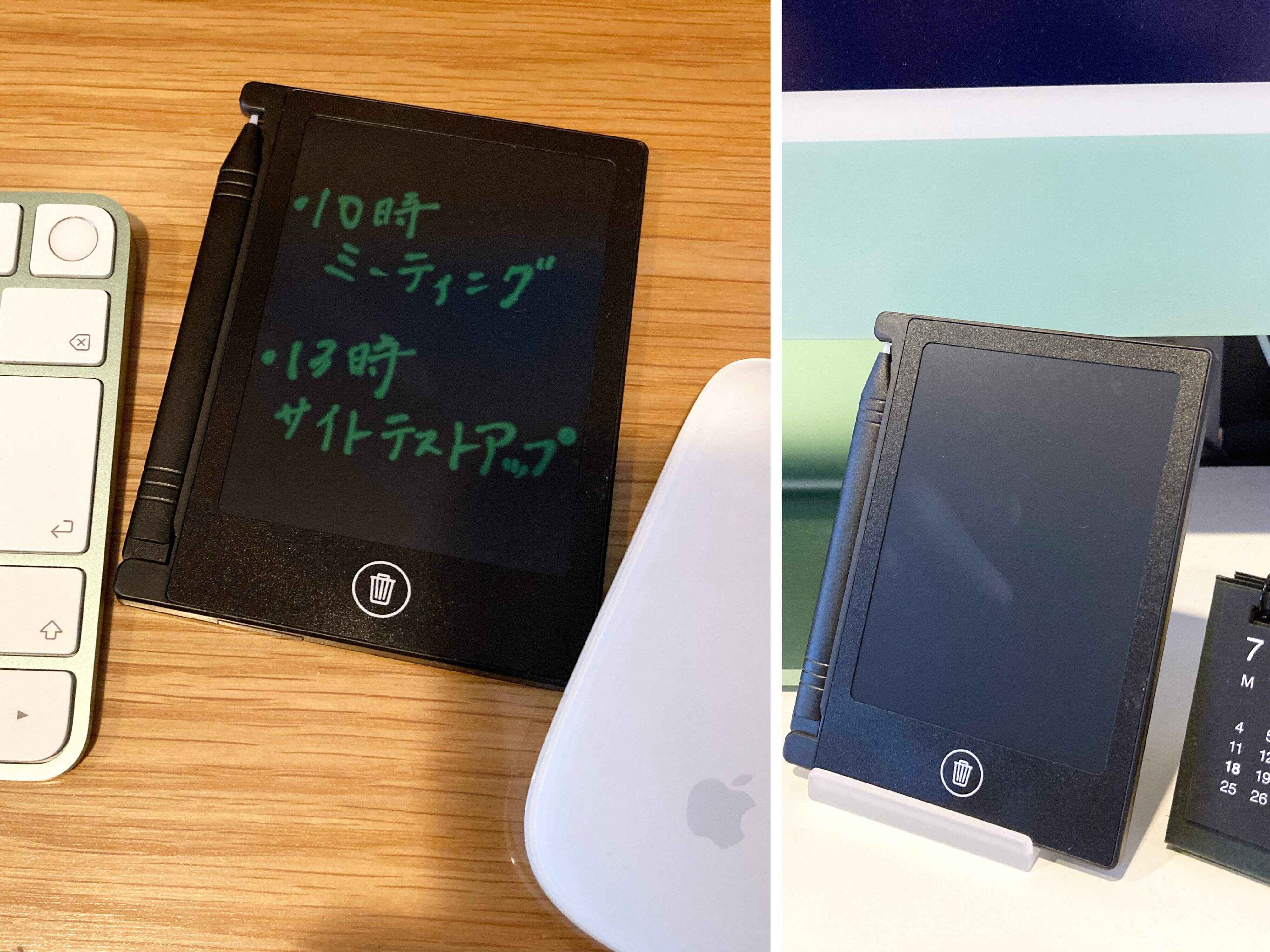 付箋をメモ代わりに使っている場合は、使用後に紙のゴミが出てしまいますが、電子メモパッドなら「書く」→「消す」で繰り返し使用できるのでとってもエコ!