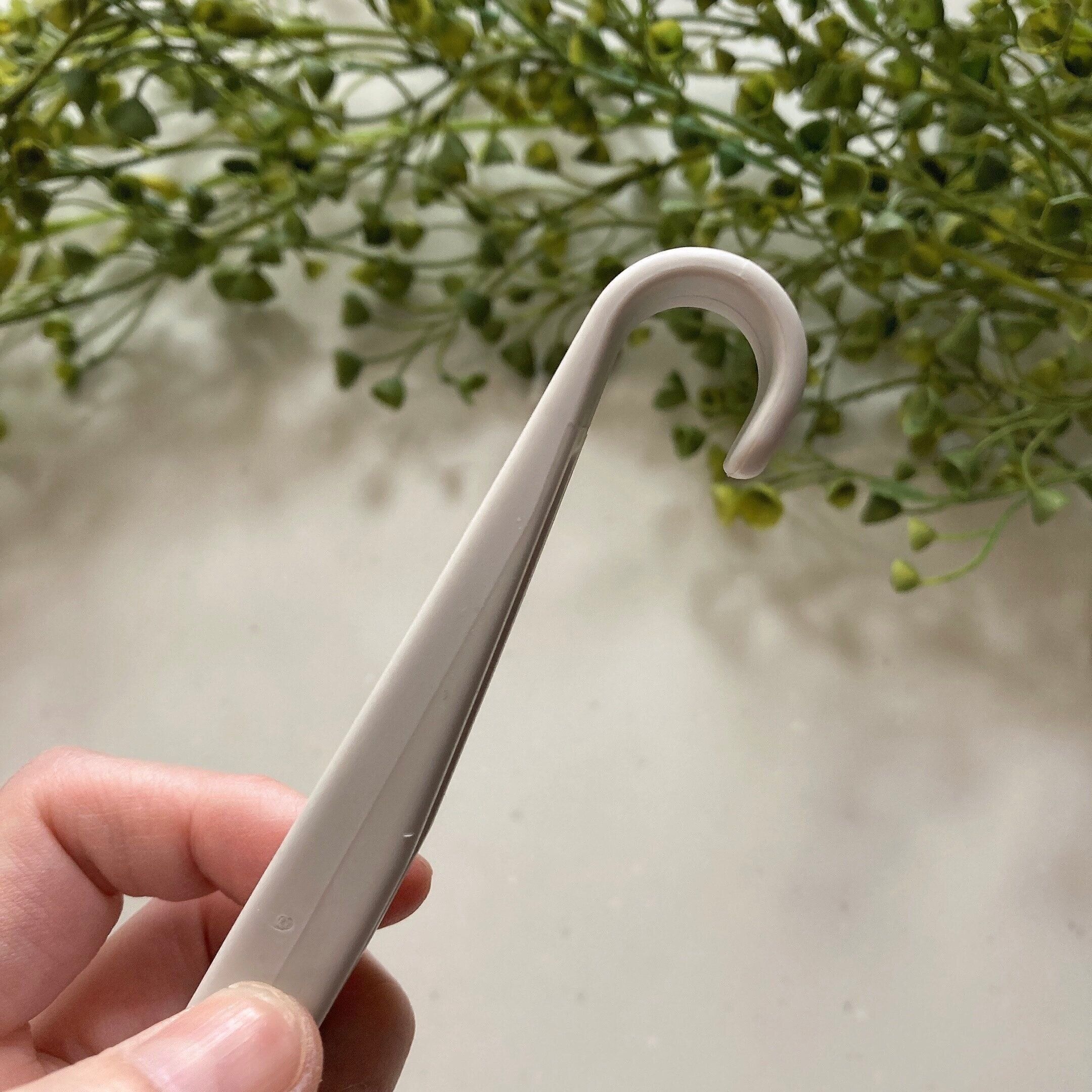 水切りカゴにかけられるように持ち手がフックのようになっています。