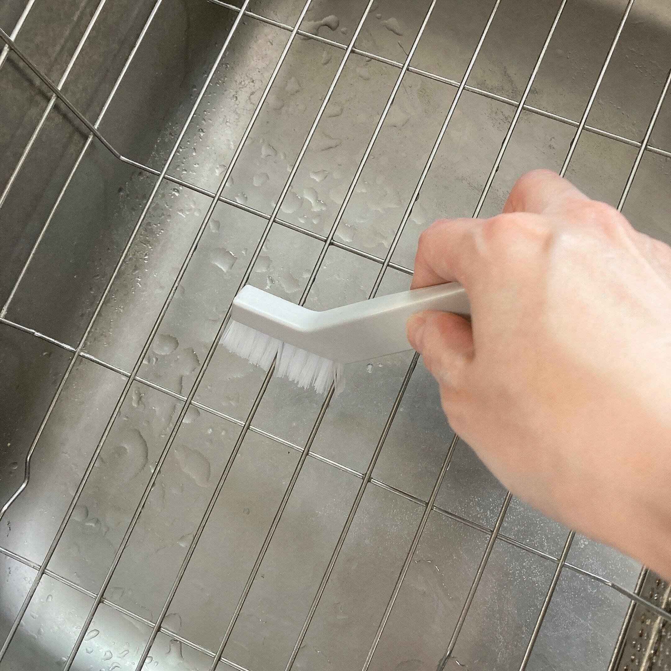凸凹に沿って汚れを落としやすい、しっかりとした毛のブラシです。