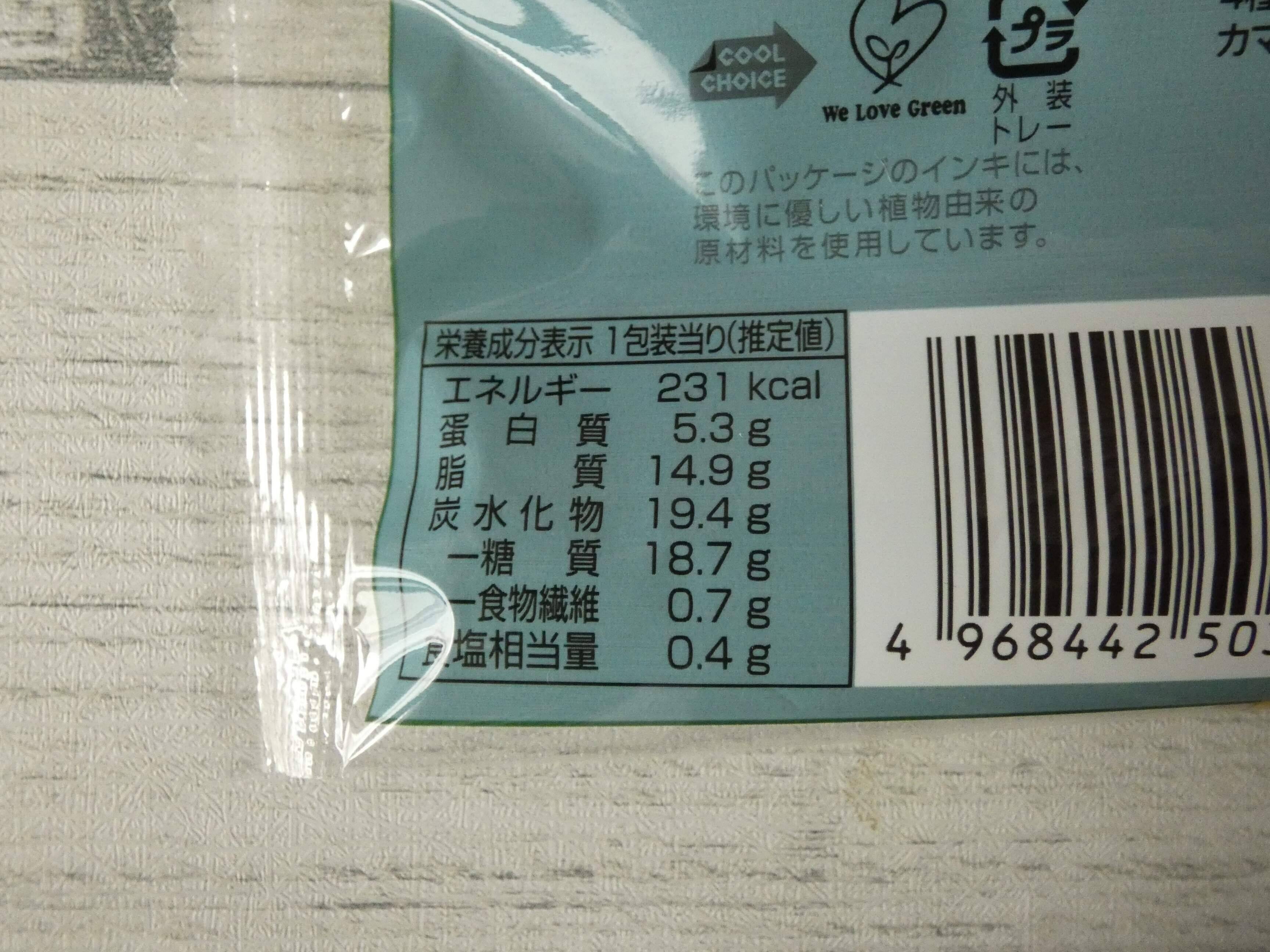 栄養成分表示を見ると、1個あたりのエネルギーは231kcal。